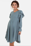 Rochie vaporoasă gravide și alăptare cu mâneca lungă - albastră