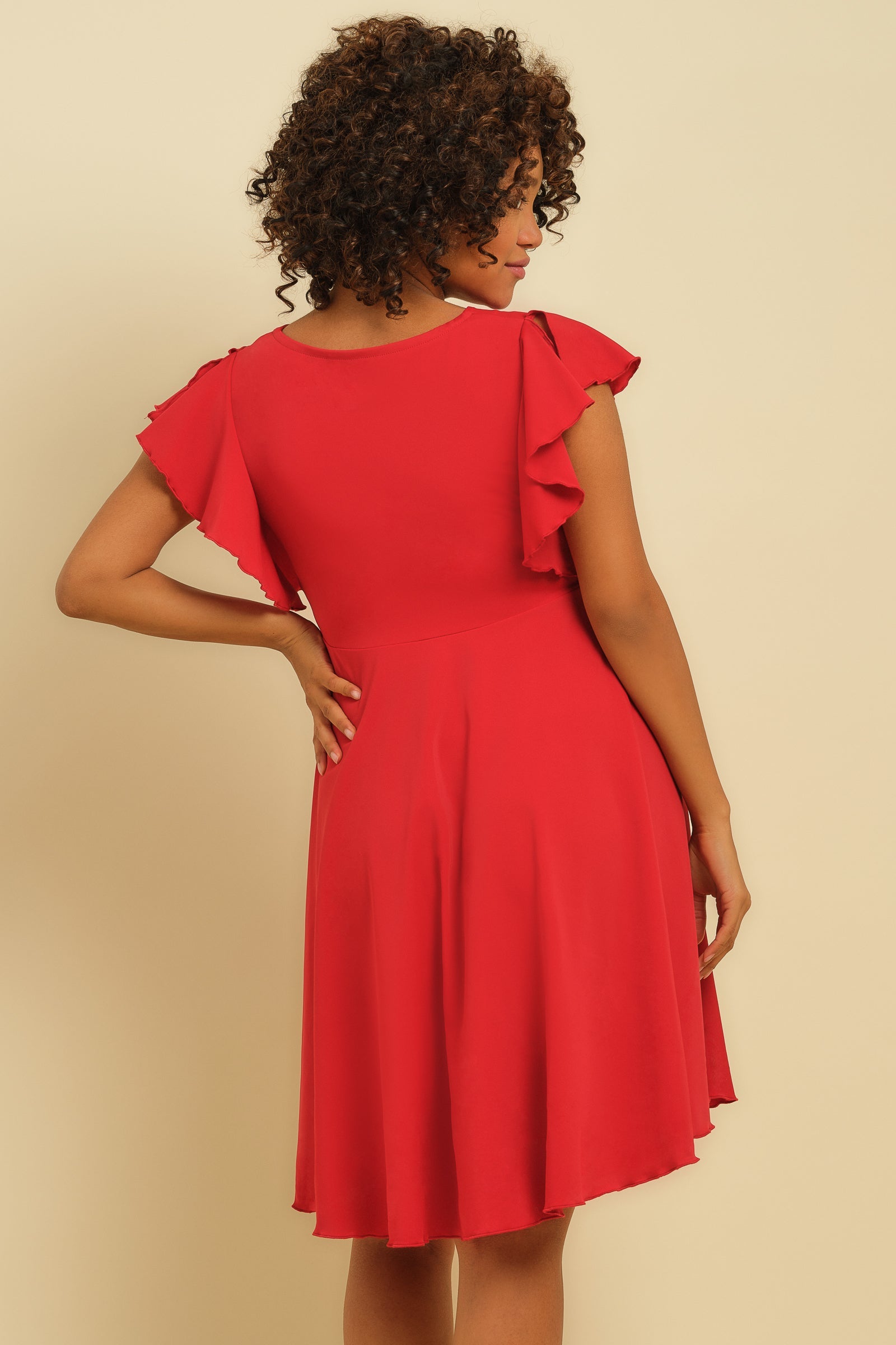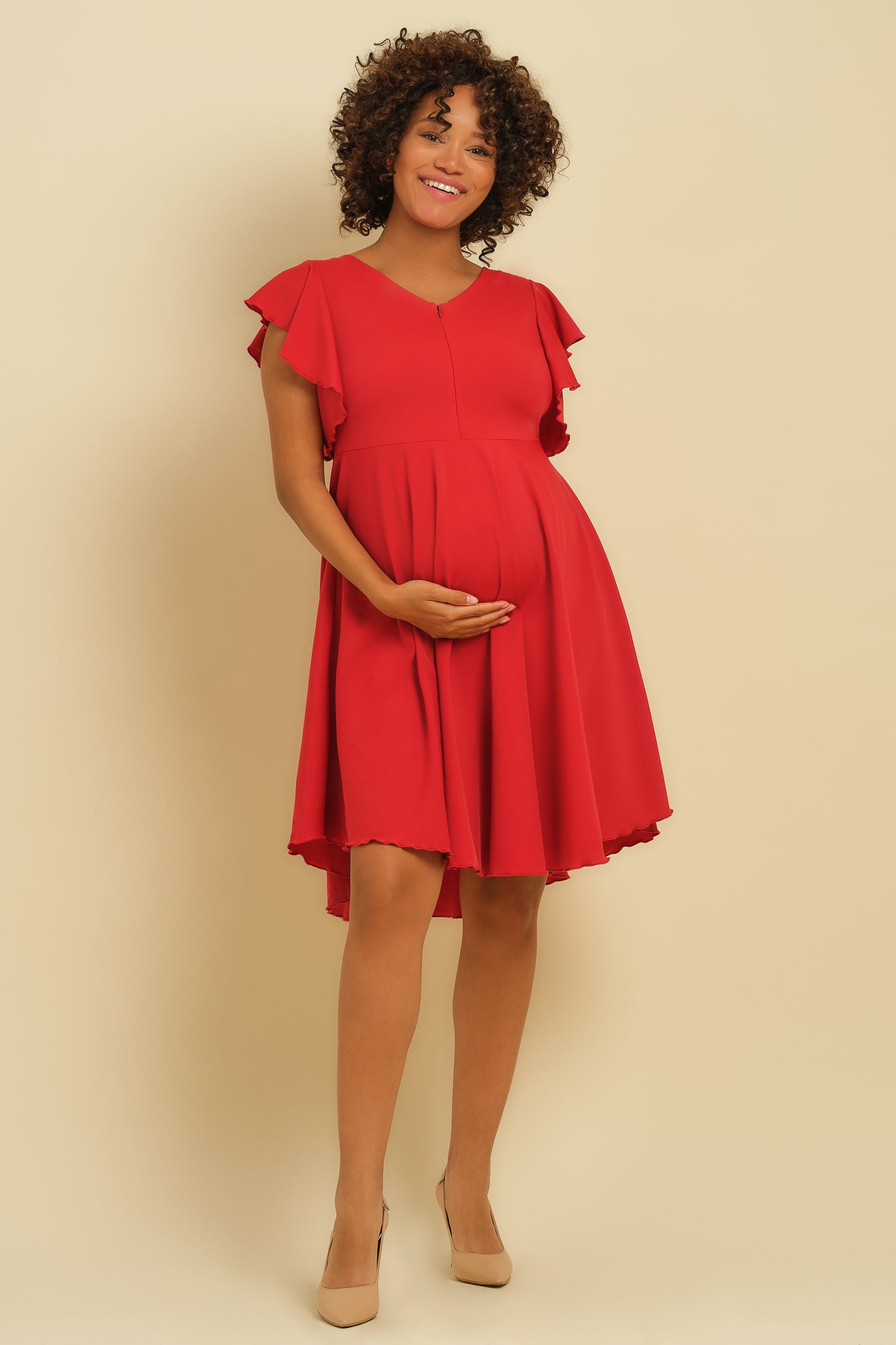 Rochie vaporoasă roșie pentru gravide și alăptare