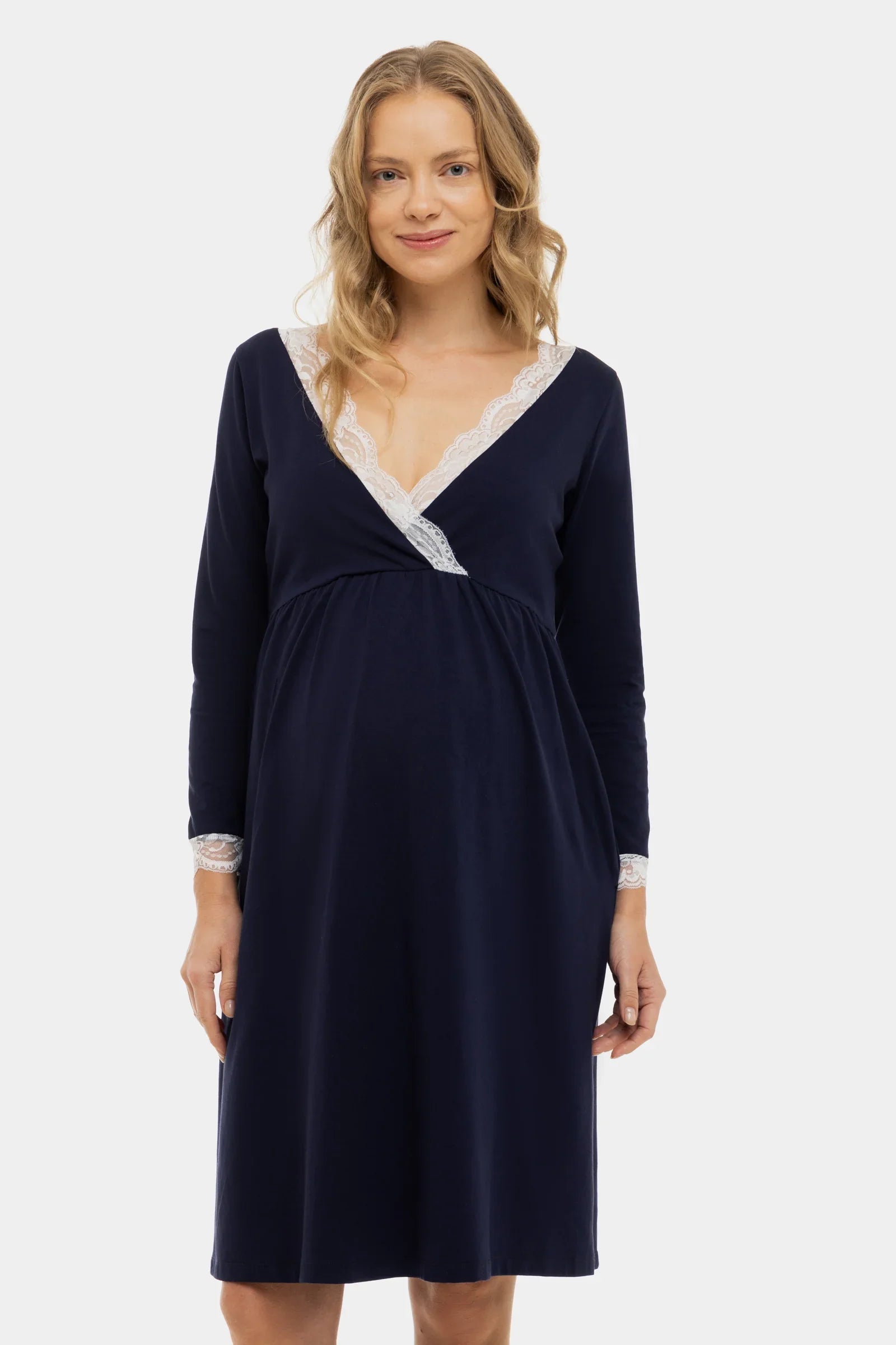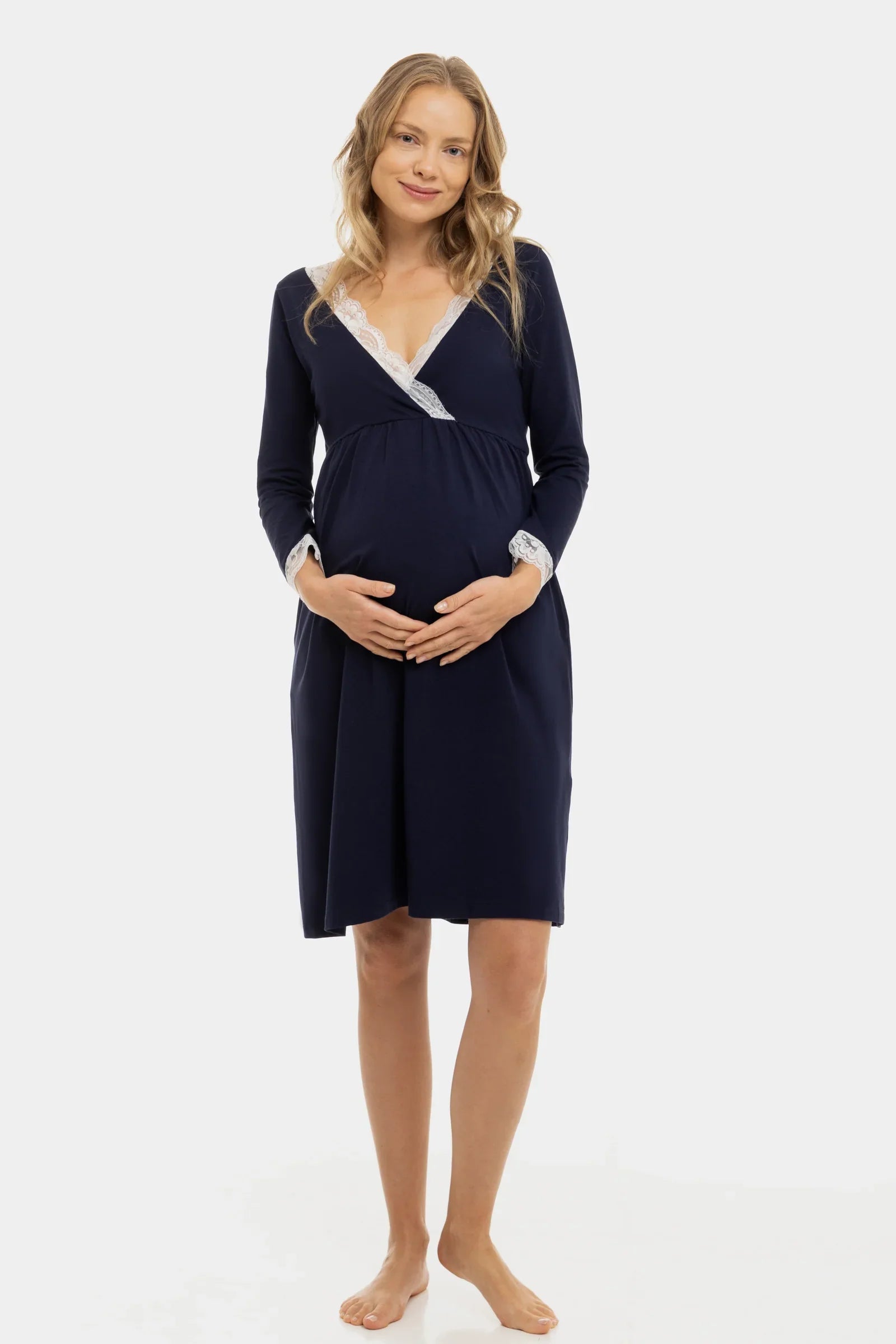 • Cămașă de noapte pentru gravide din jerseu moale de bumbac în albastru închis