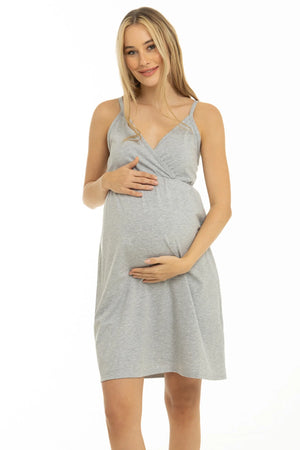 Cămașă de noapte din bumbac pentru gravide și alăptare – gri