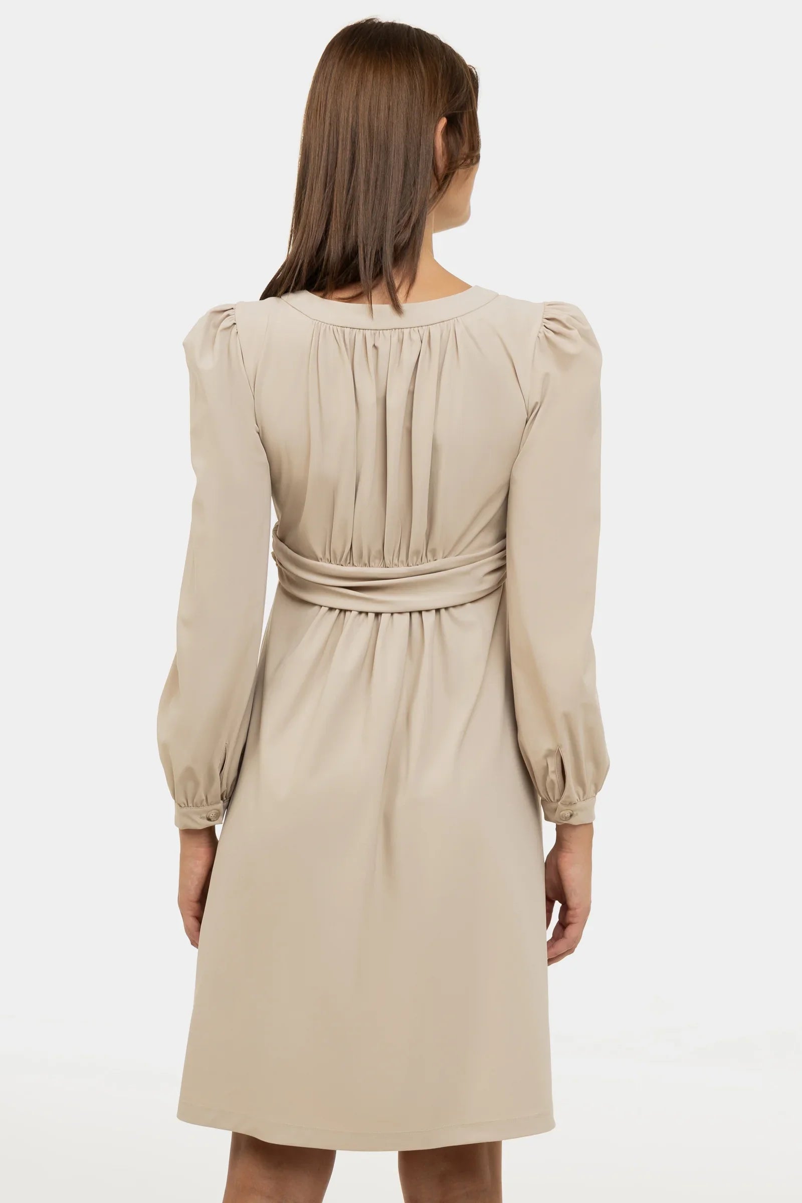 - Rochia este confecționată dintr-un material elastic în culoarea bej