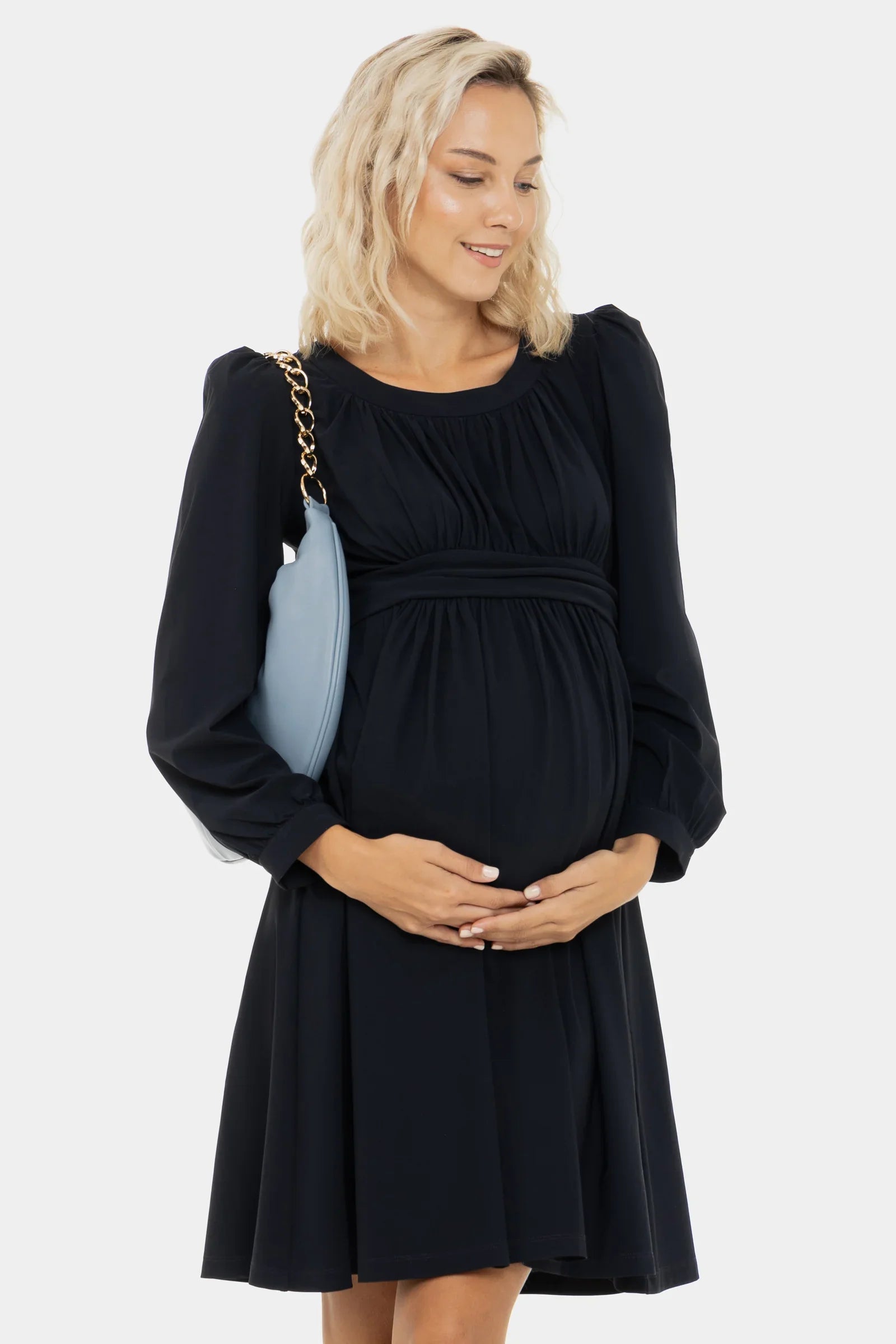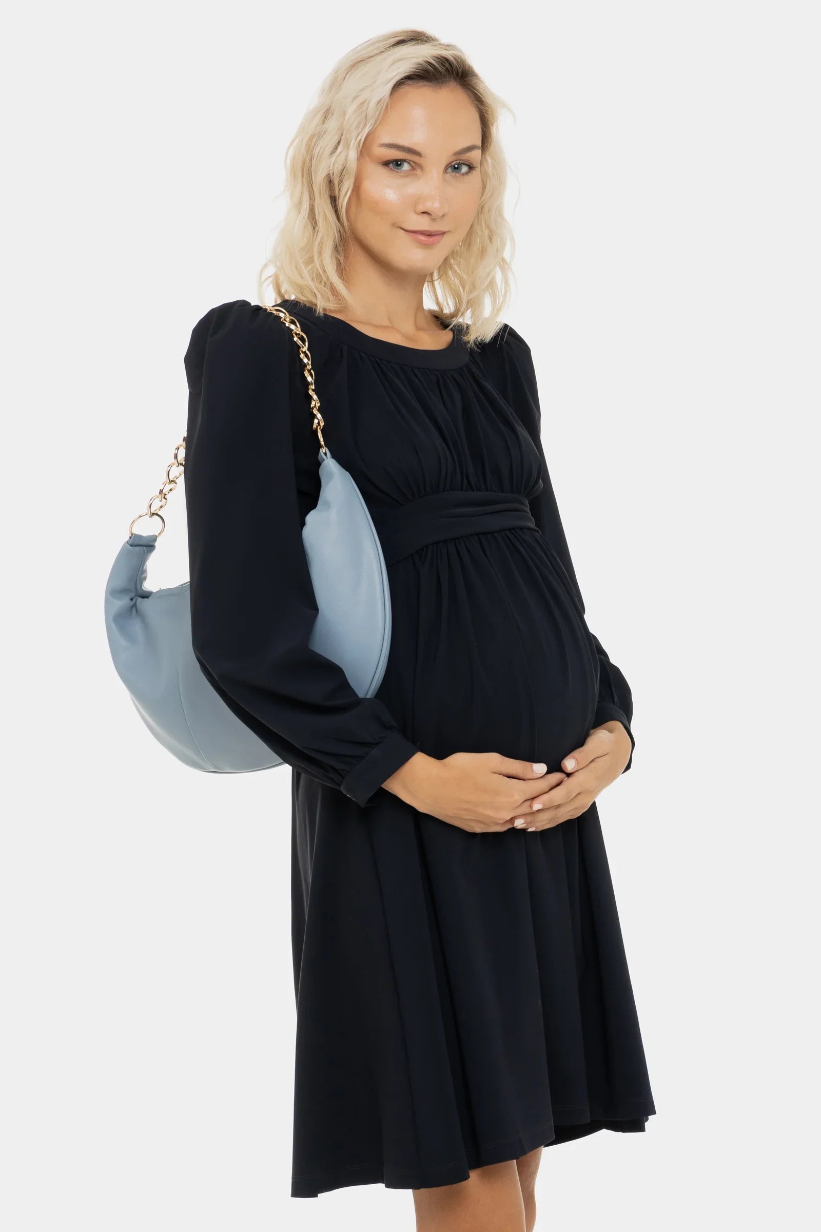 - Rochia este confecționată dintr-un material elastic în albastru închis