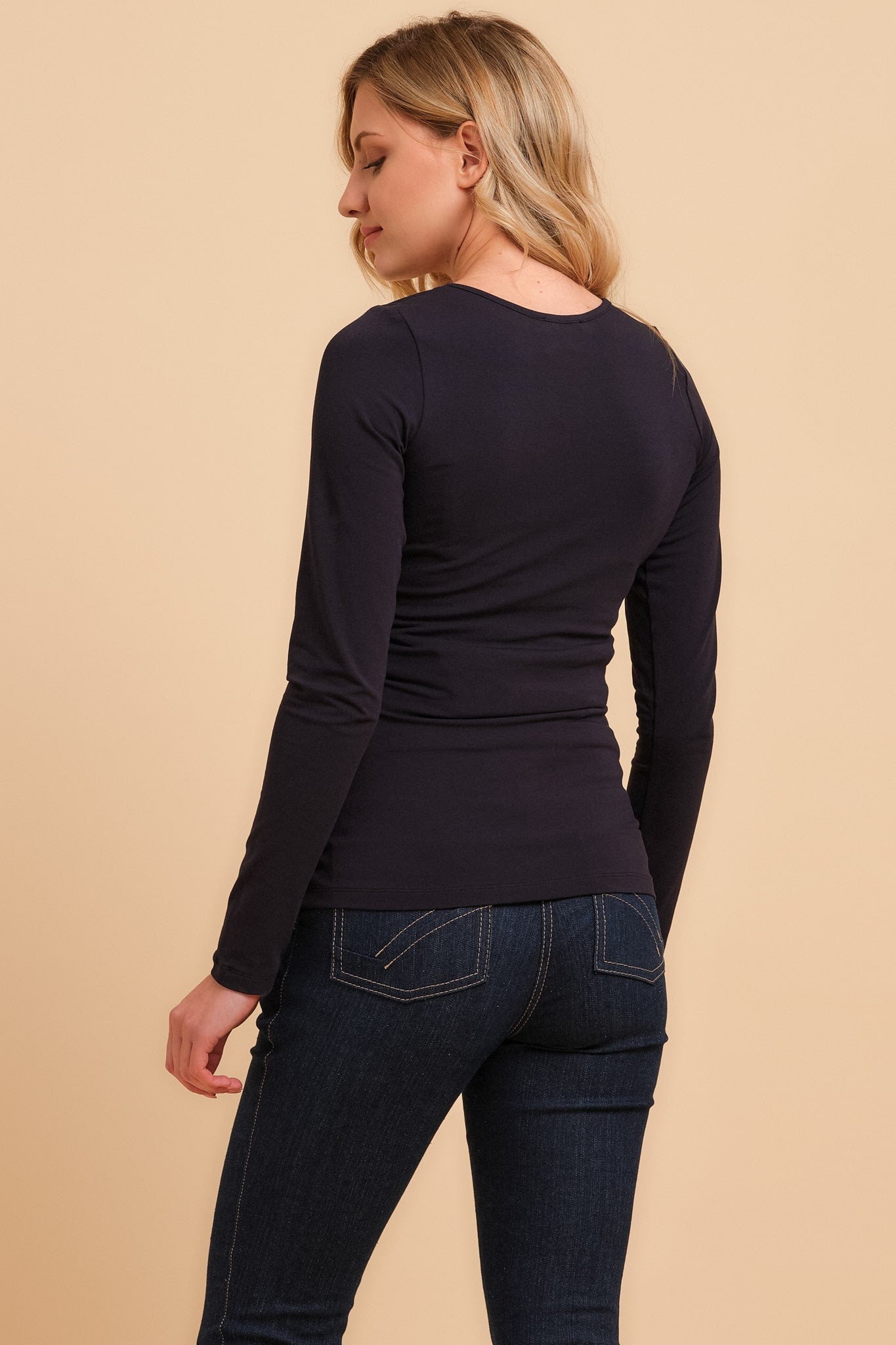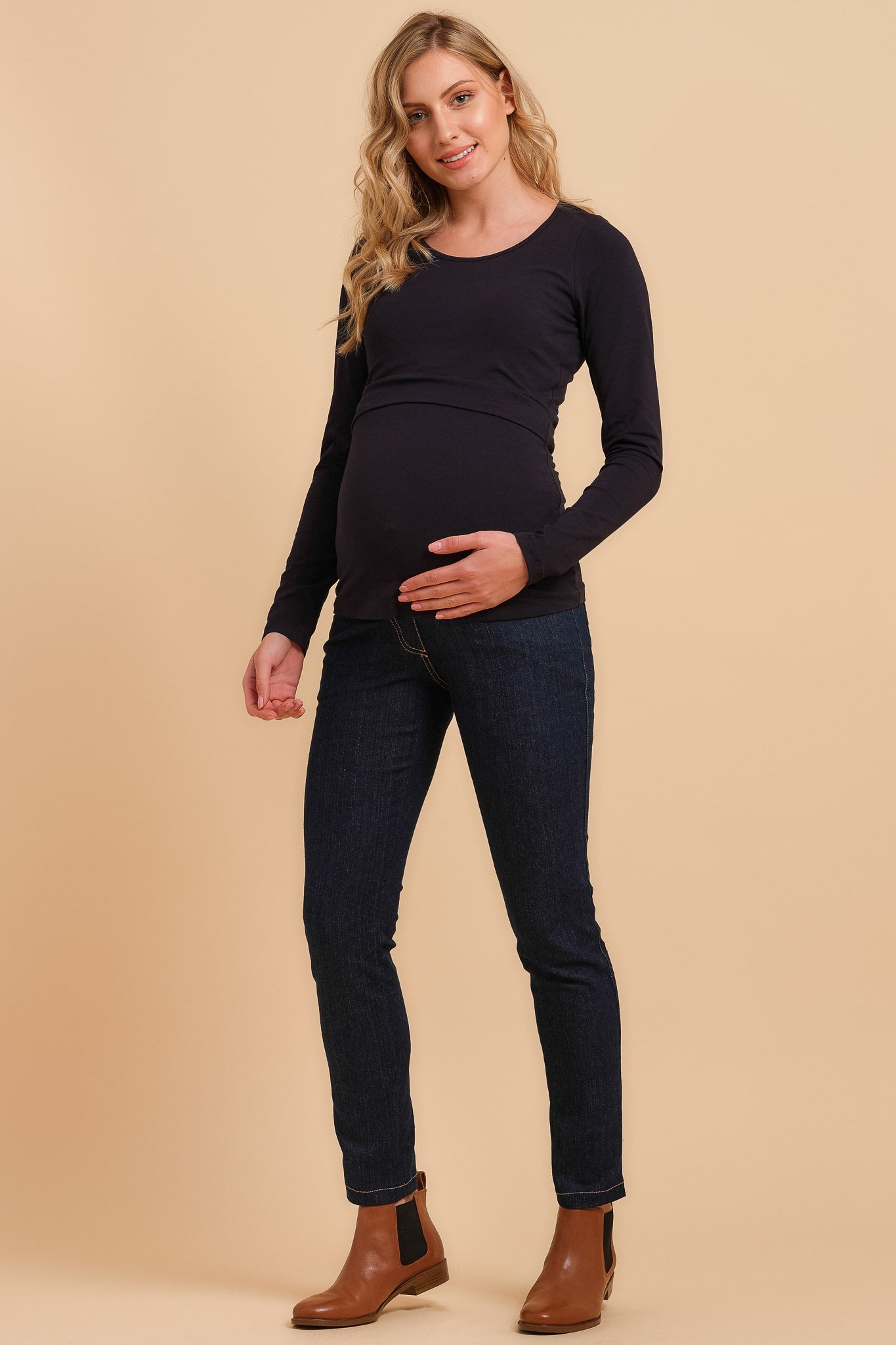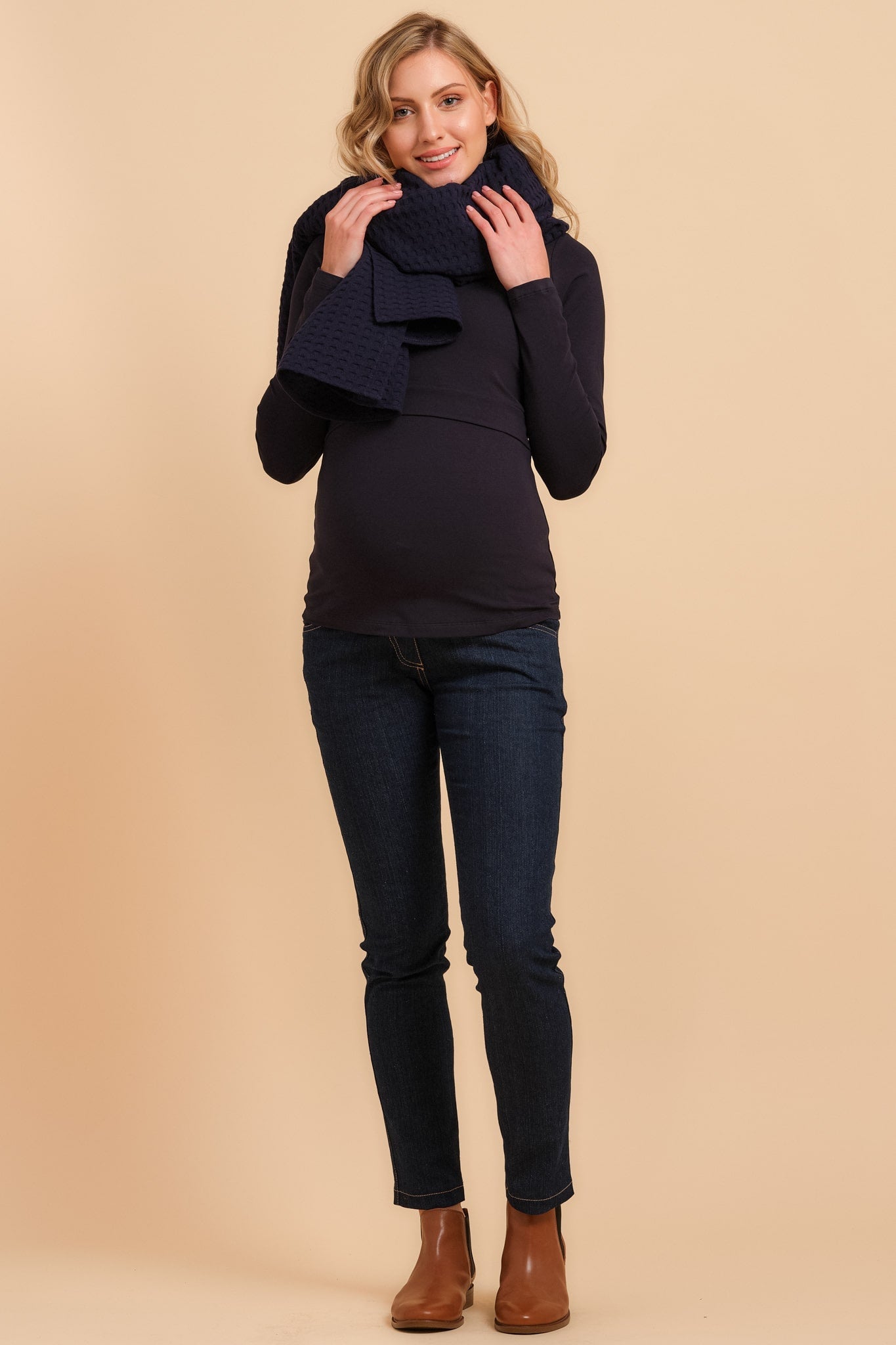Bluză de bumbac pentru gravide și alăptare - albastru închis