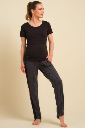 Pantaloni din jerseu cu benzi pe laterale pentru gravide