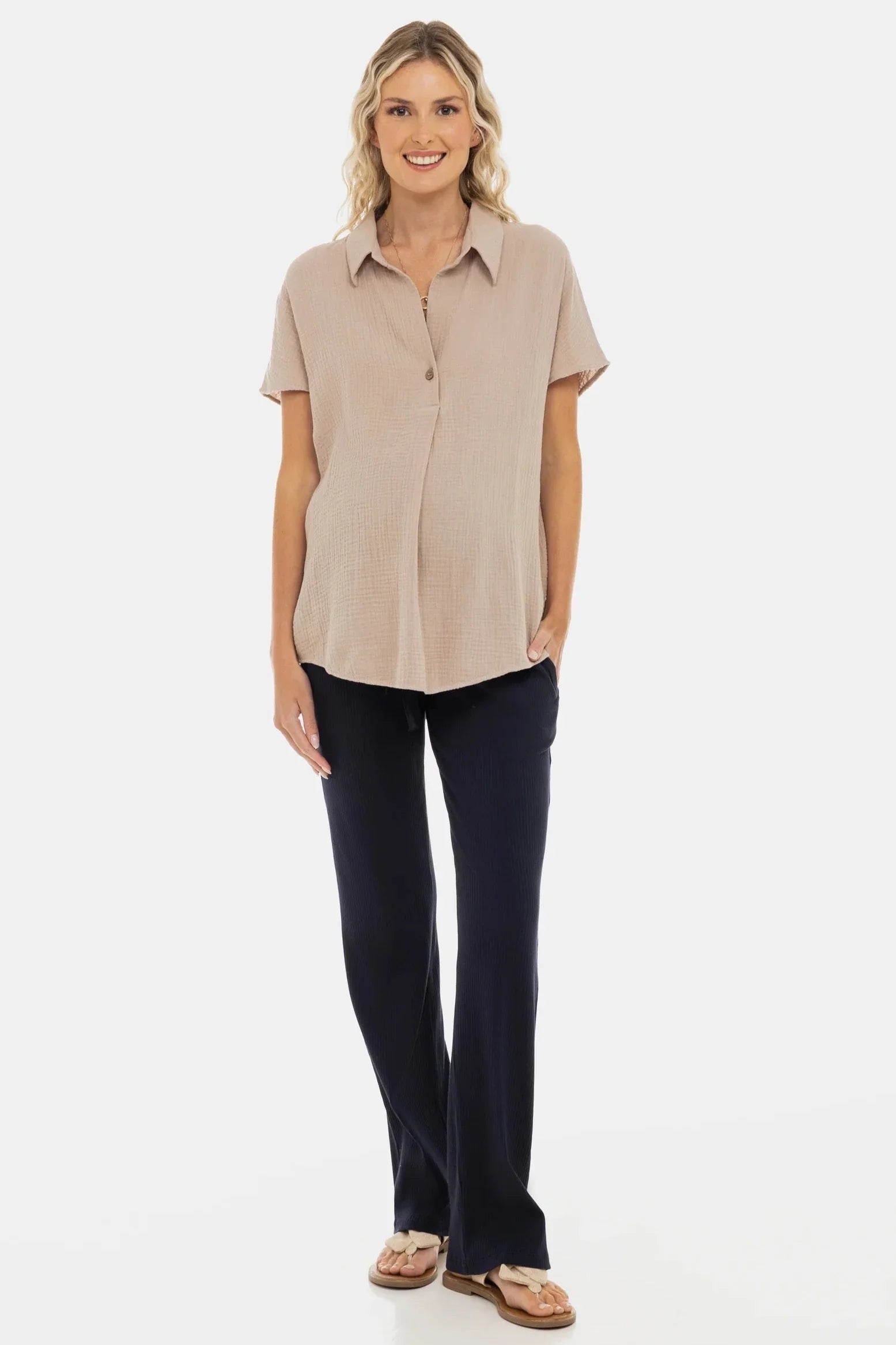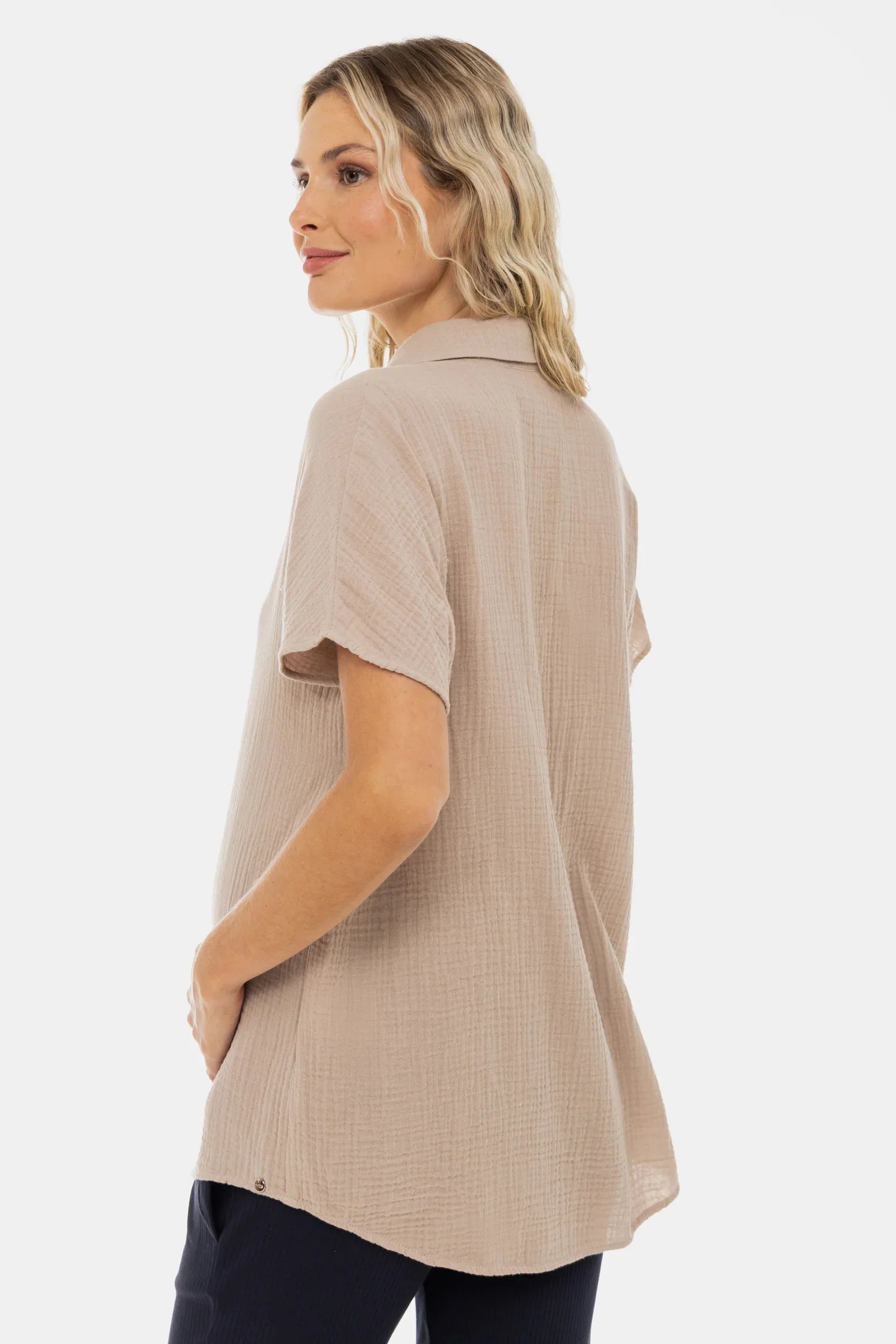 Bluză din bumbac pentru gravide și alăptare – bej