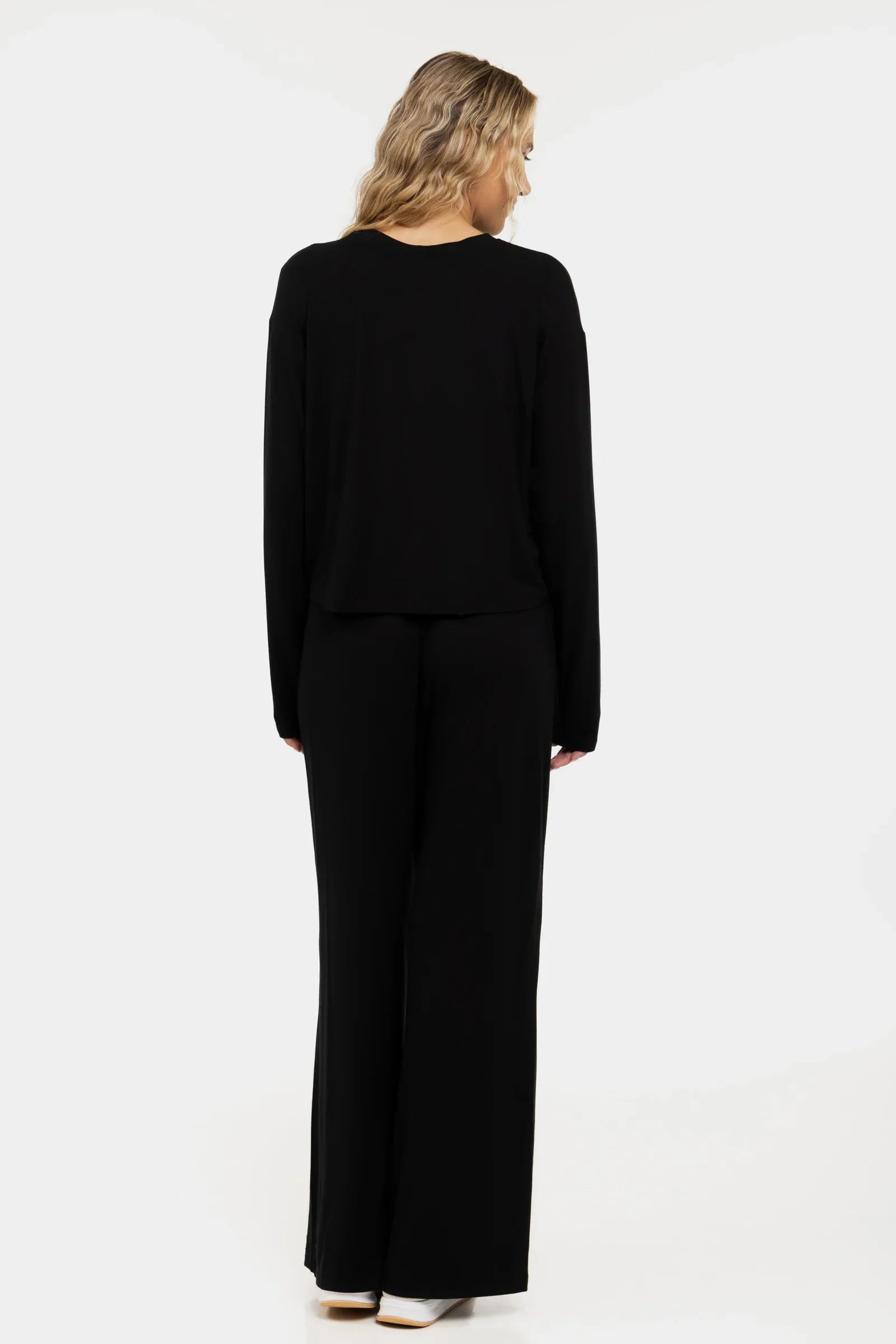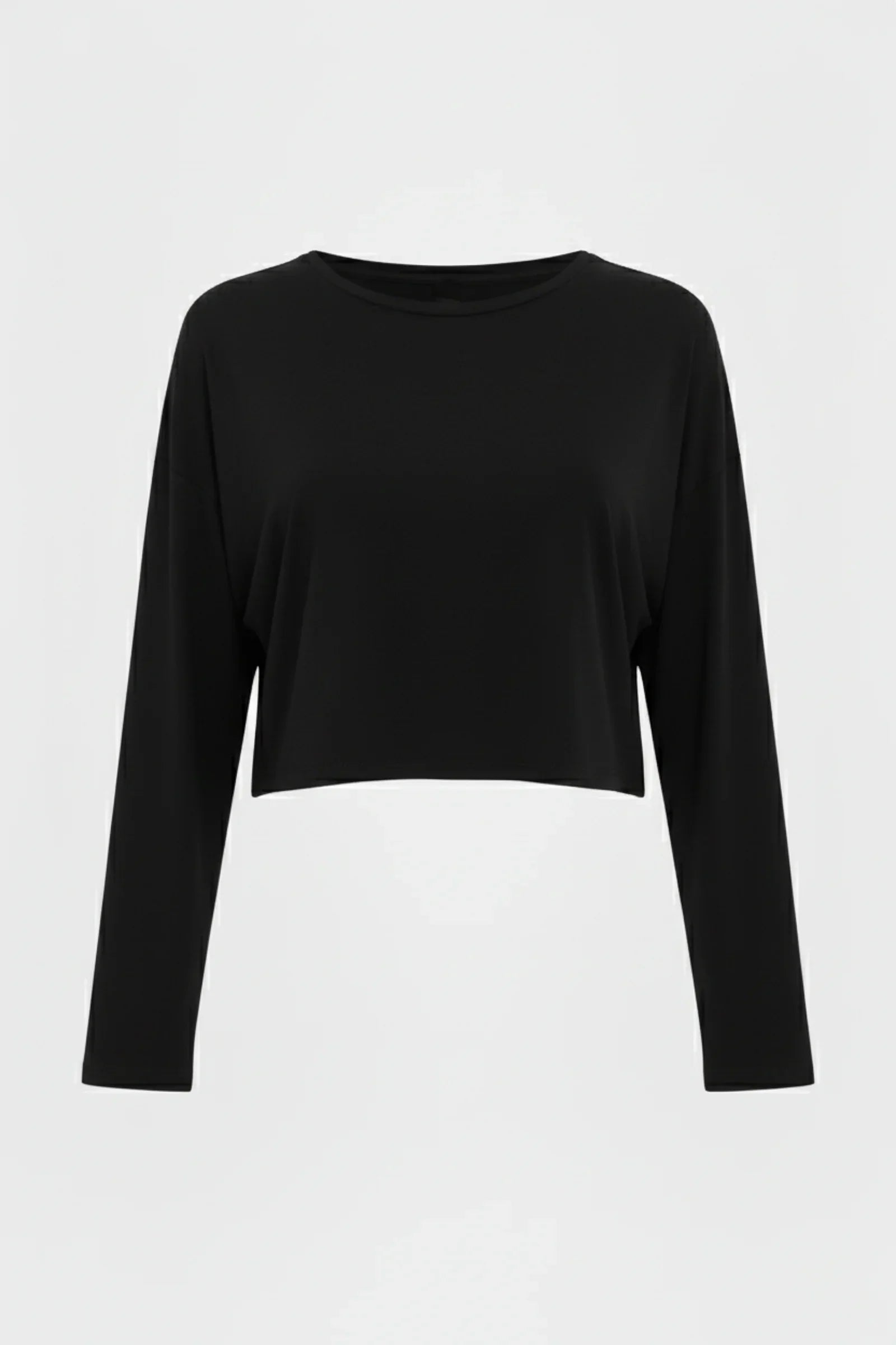 Top scurt cu mânecă lungă pentru gravide din modal moale – negru