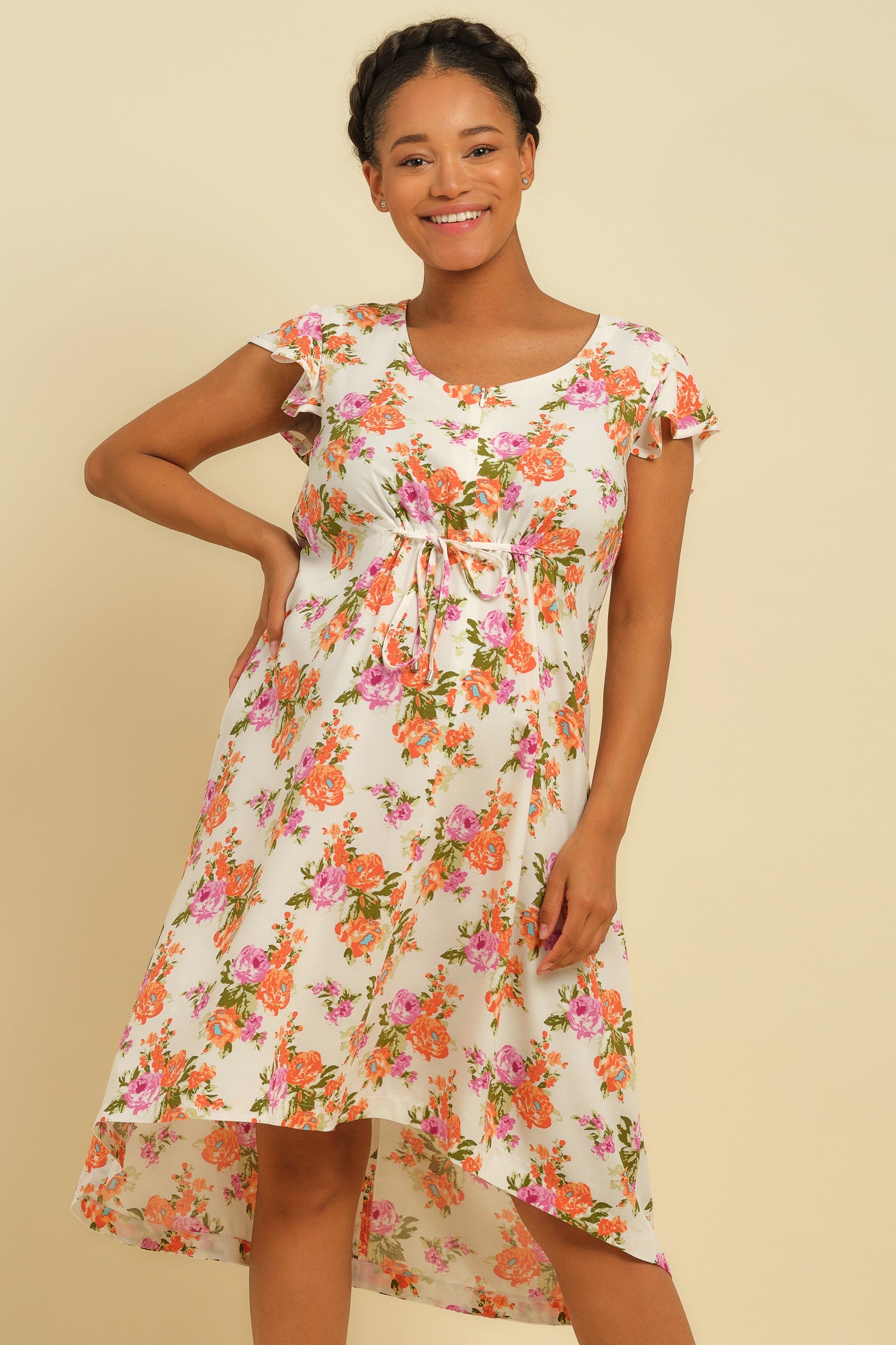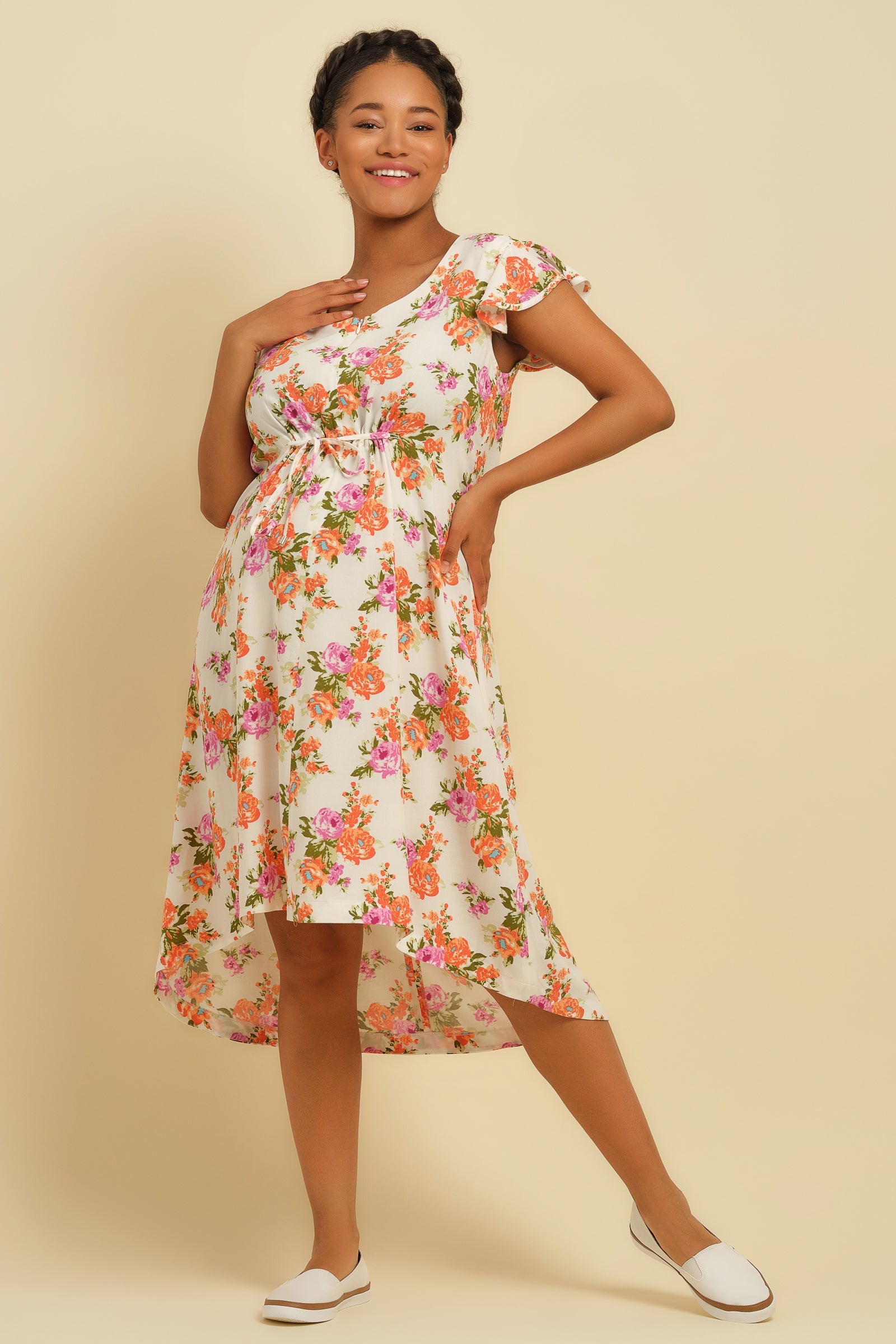 Rochie asimetrică cu imprimeu pentru gravide și alăptare
