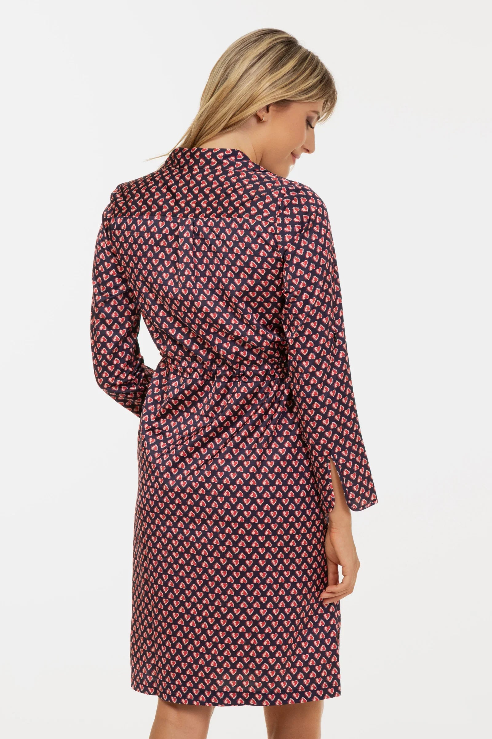 Rochie-cămașă din satin pentru gravide și alăptare cu model