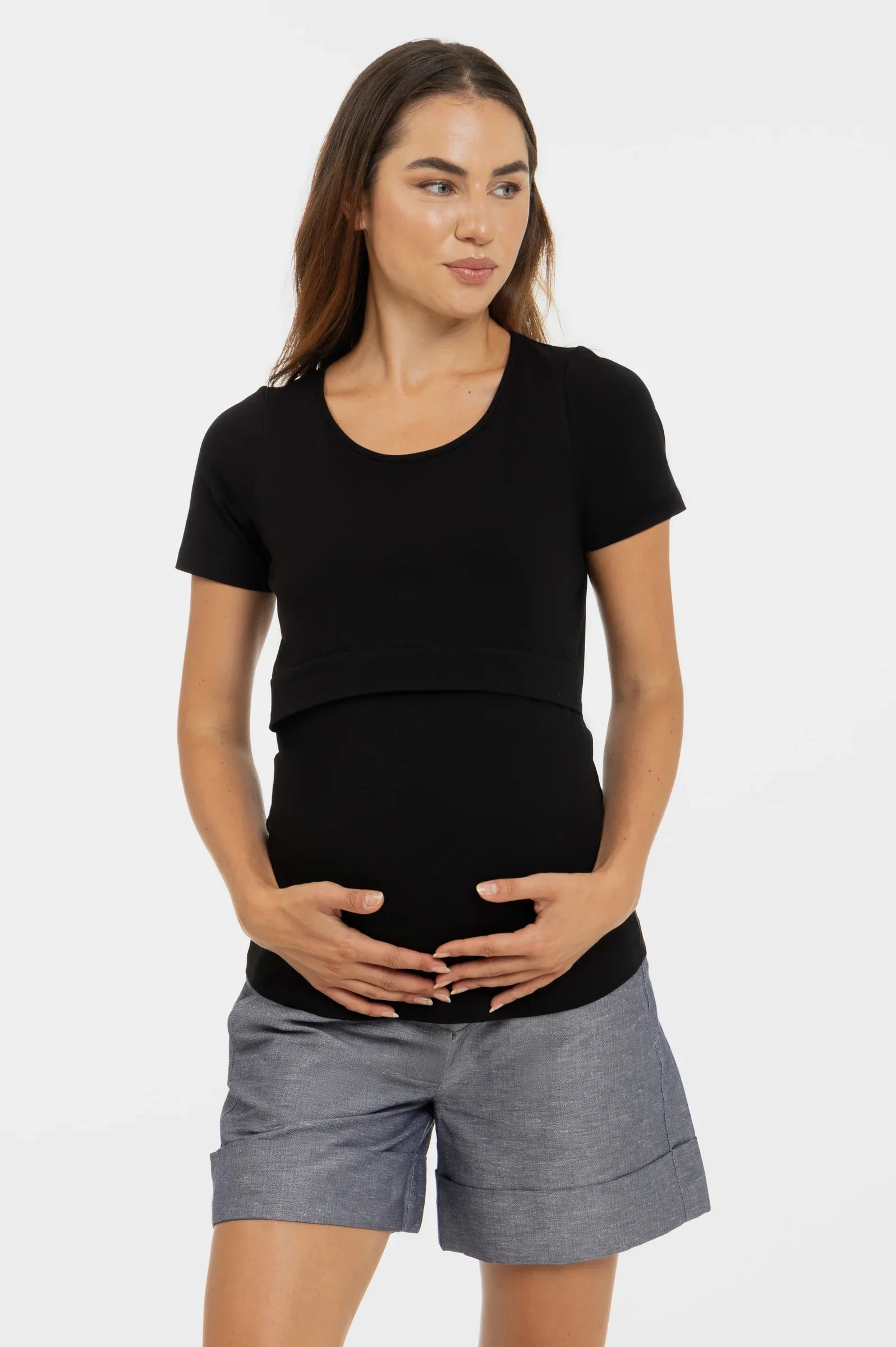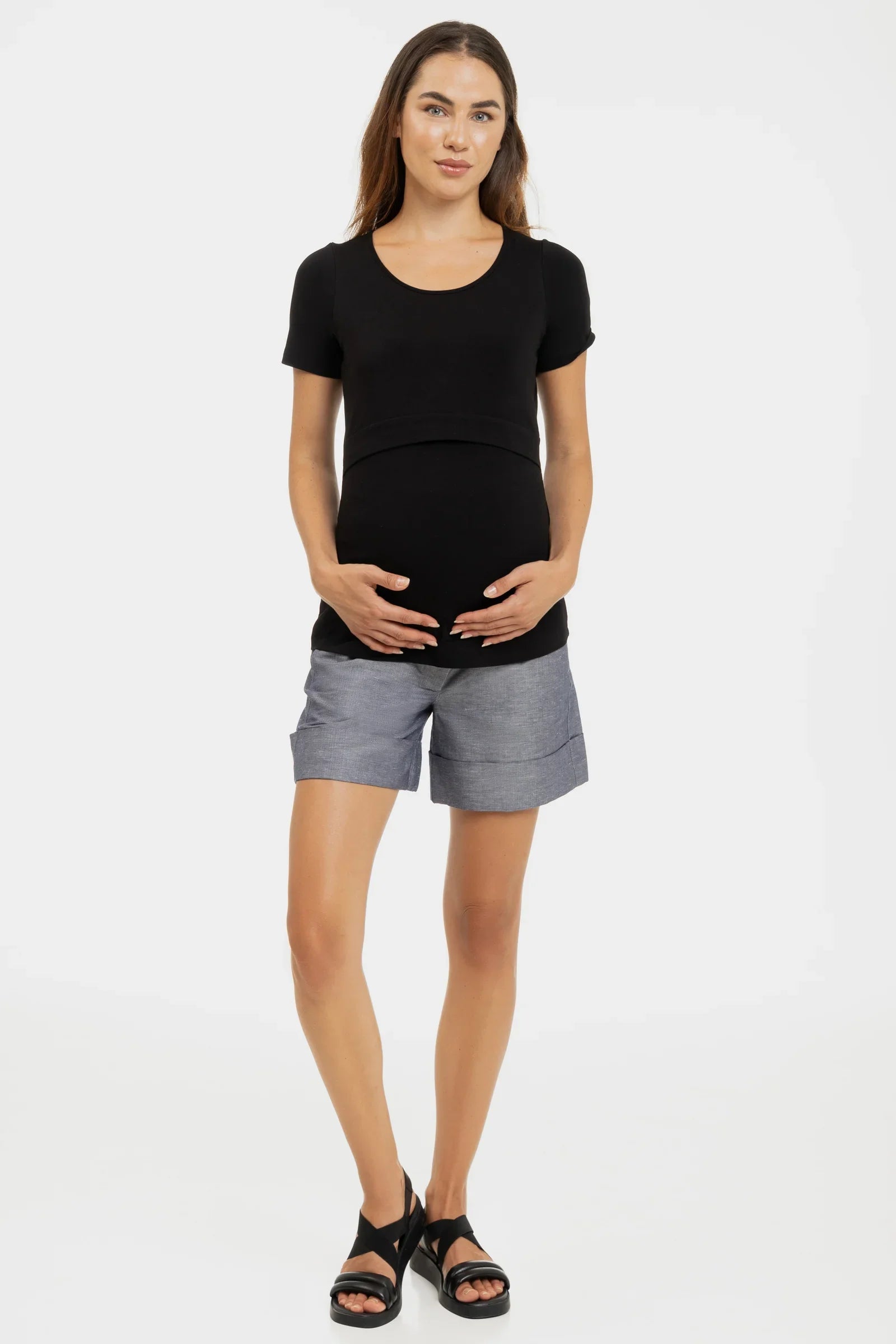 - Pantaloni scurți pentru gravide din bumbac, cu model tip „os de pește”