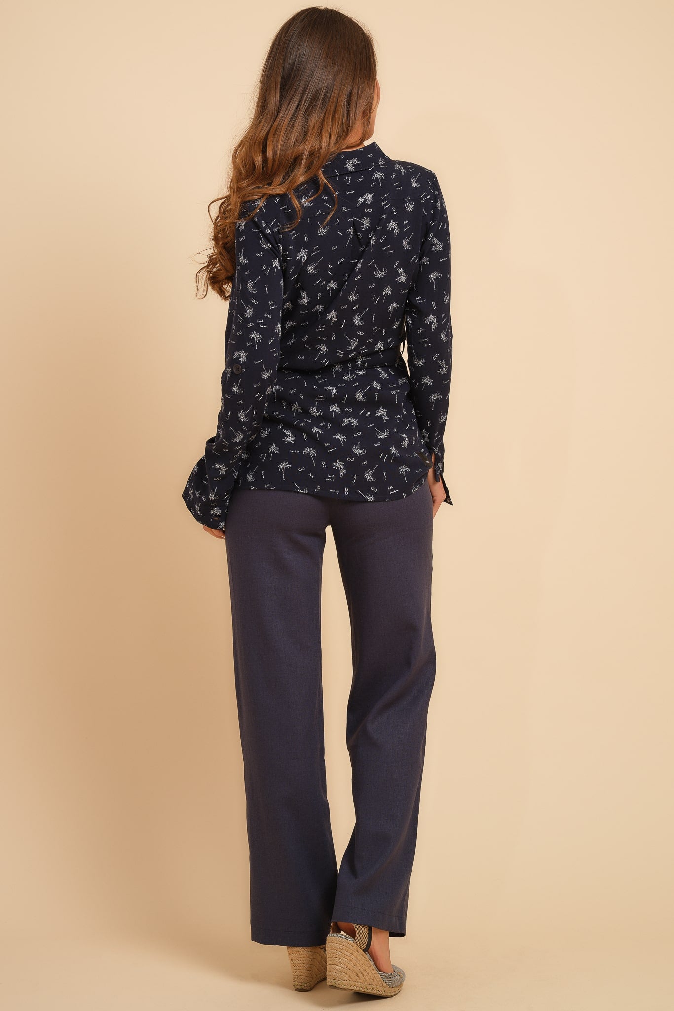 Pantaloni din in pentru gravide cu crăpătură evazată – bleumarin