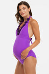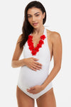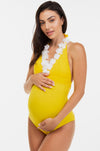 Costum de baie pentru gravide cu aplicații cu flori - galben