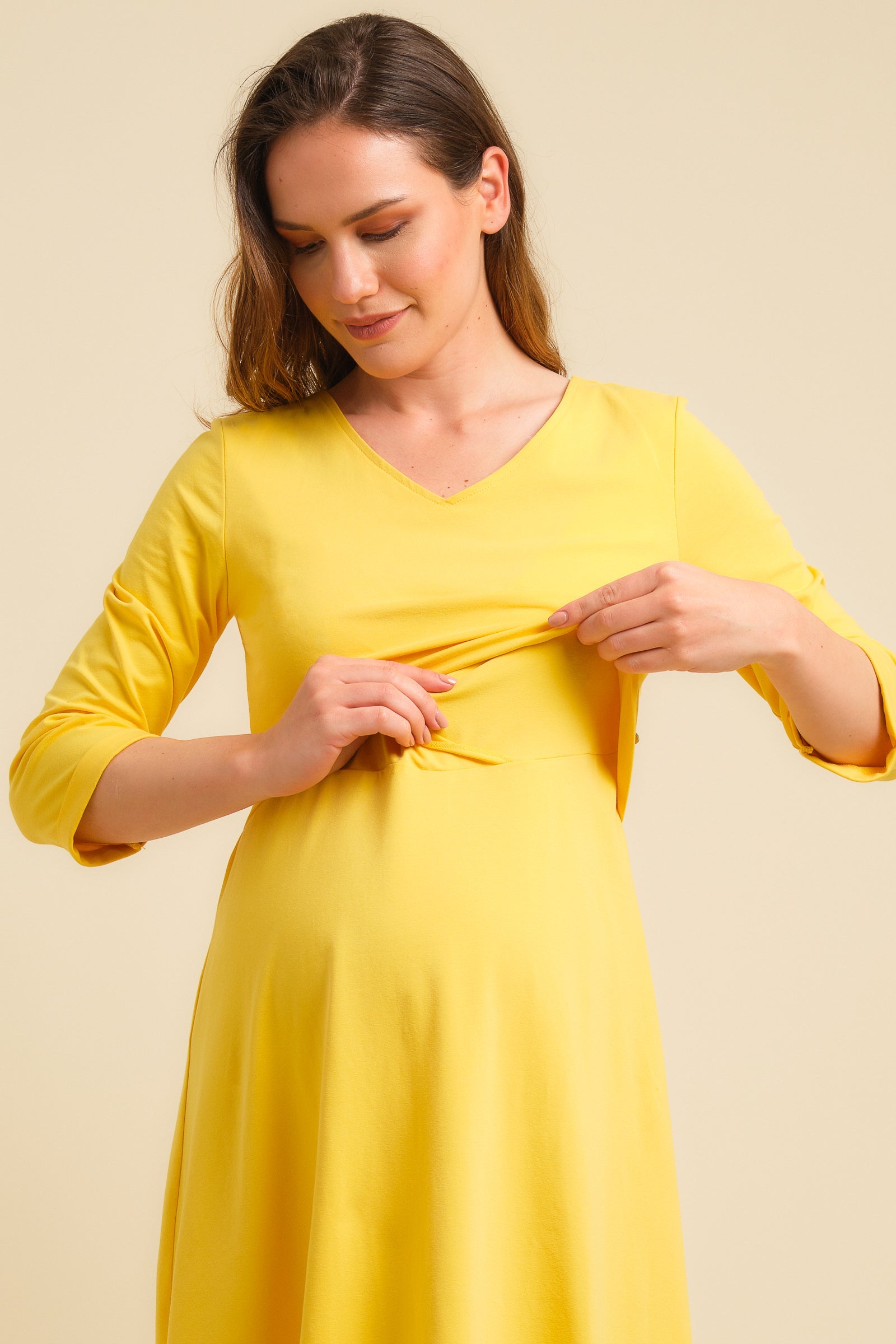 Rochie din bumbac pentru gravide și alăptare - galbenă