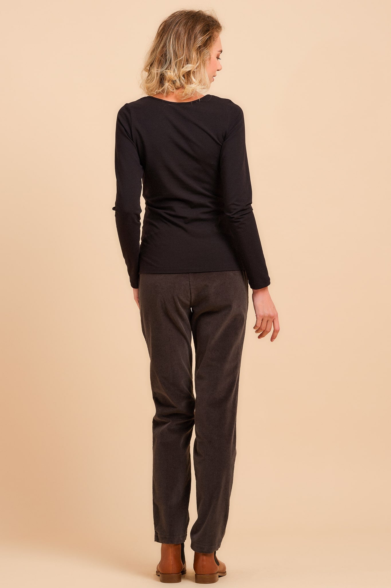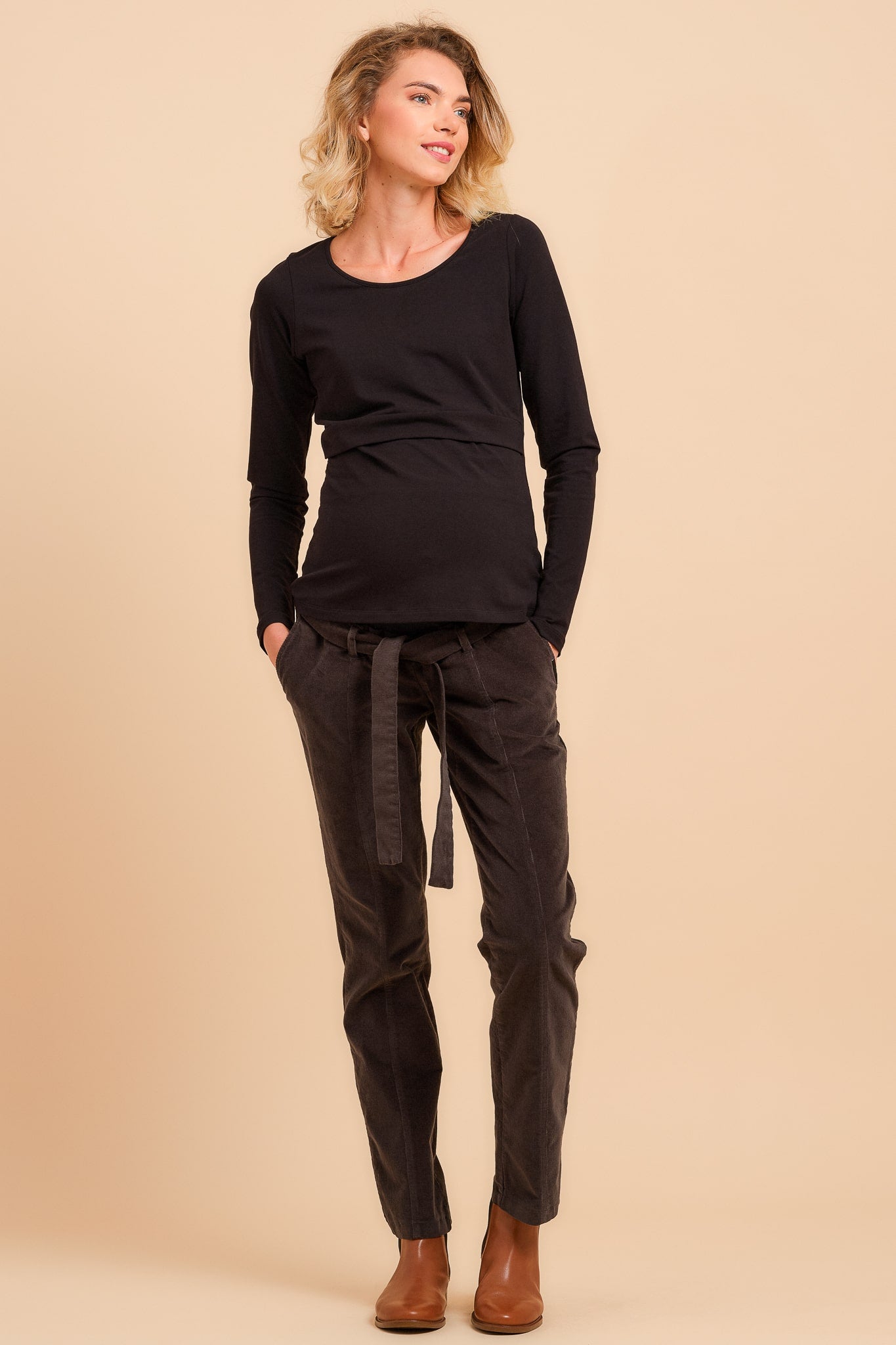 - Pantalonul pentru gravide este confecționat din catifea cotelată de bumbac în culoarea kaki