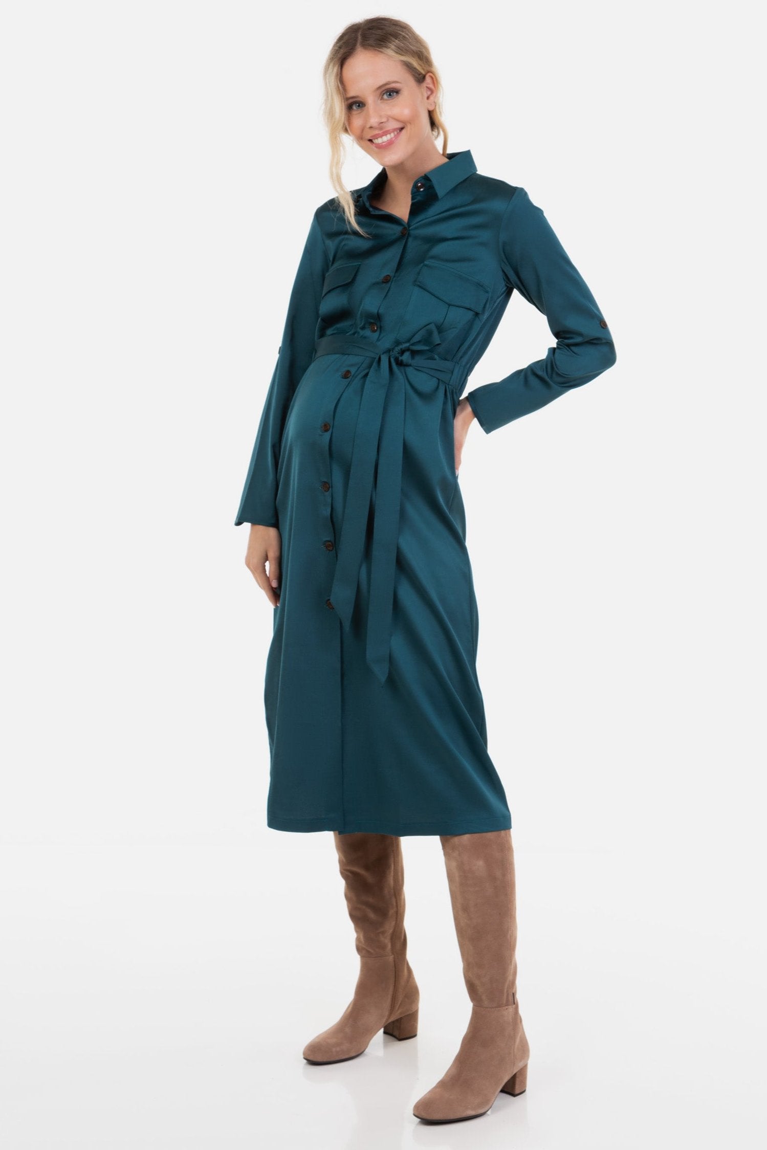 Rochie lunga satinată pentru gravide și alăptare