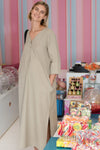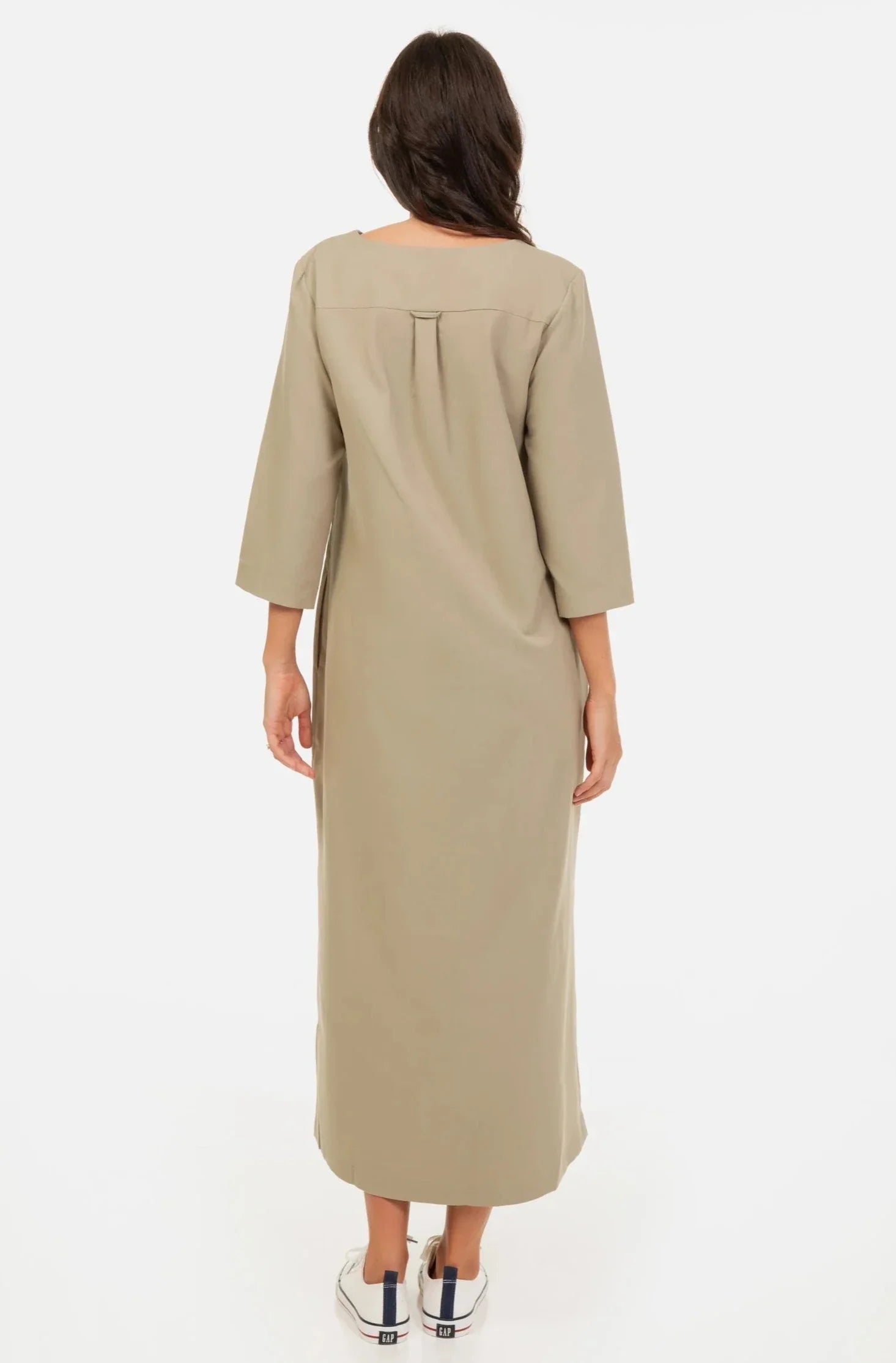 - Rochie pentru gravide din material țesut, în culoarea kaki
