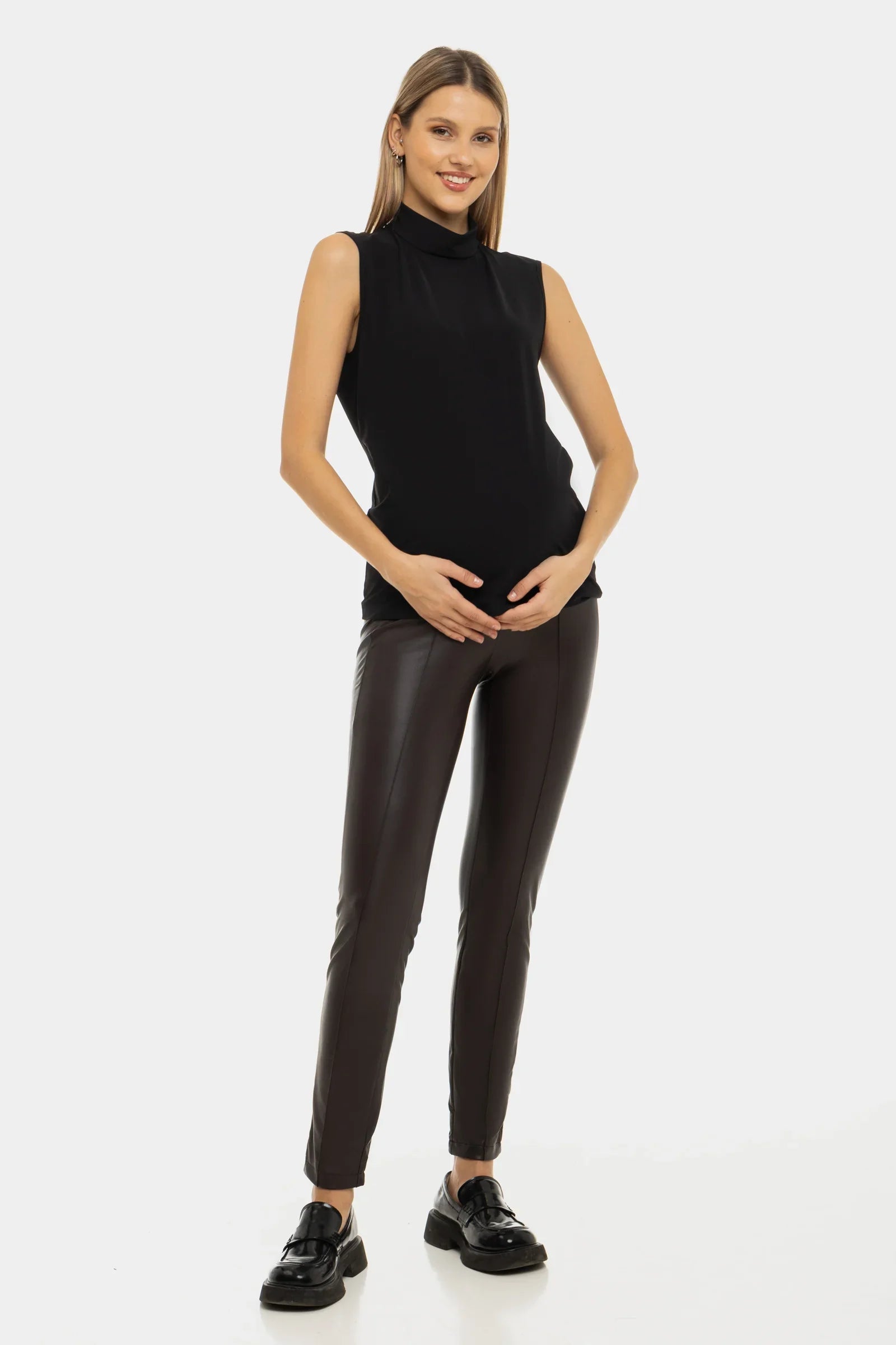 Colanți pentru gravide din imitație de piele
