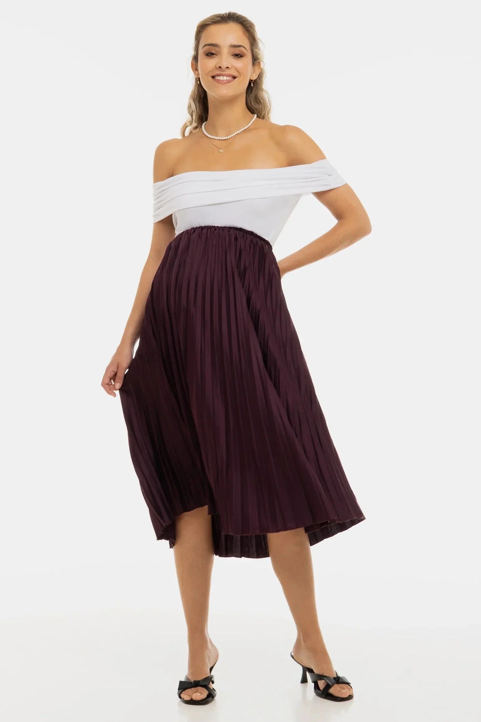 Ușoară și vaporoasă, această fustă pentru gravide, într-o culoare delicată, transformă fiecare moment într-un prilej de a străluci.