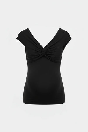 Bluză elegantă pentru gravide cu nod decorativ – neagră