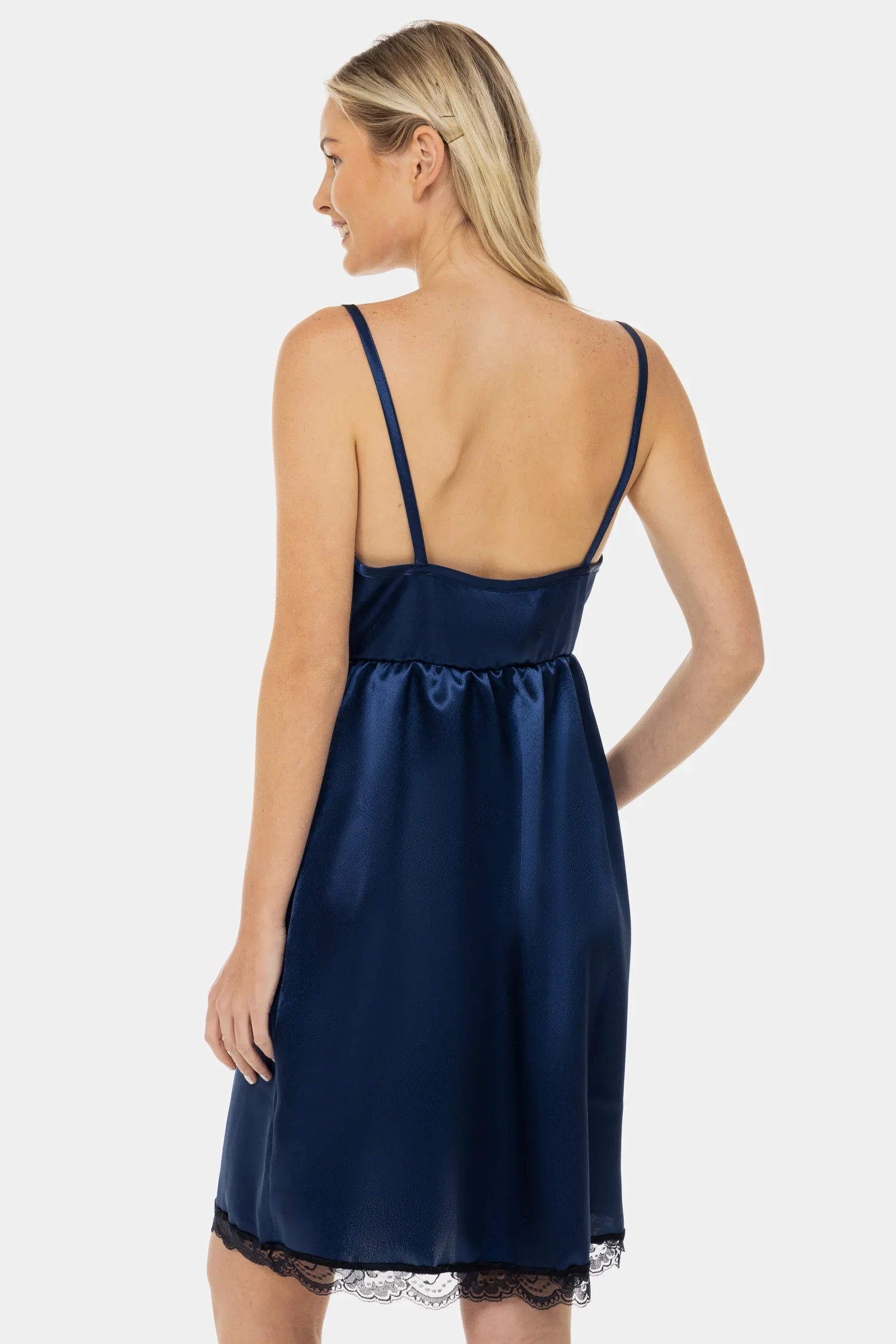 - Cămașă de noapte pentru gravide, din satin moale în albastru închis