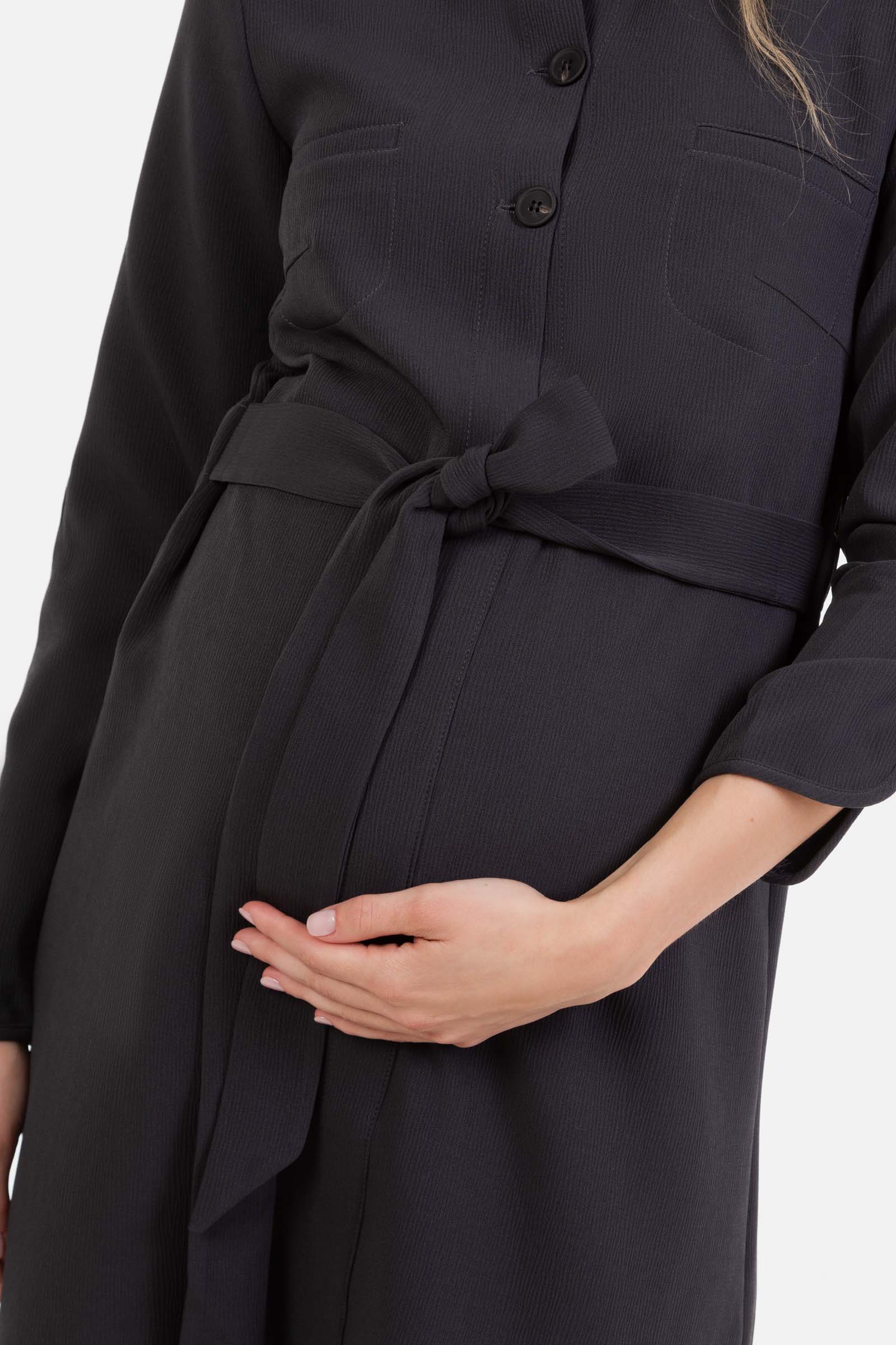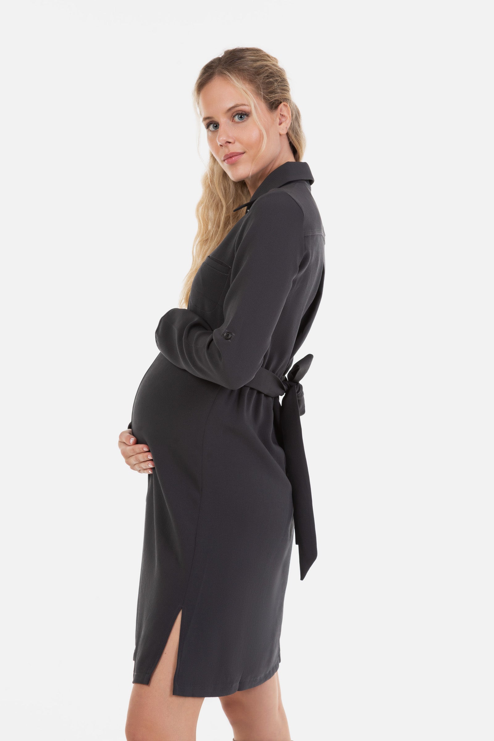 Rochie-cămașă pentru gravide și alăptare din material texturat – gri