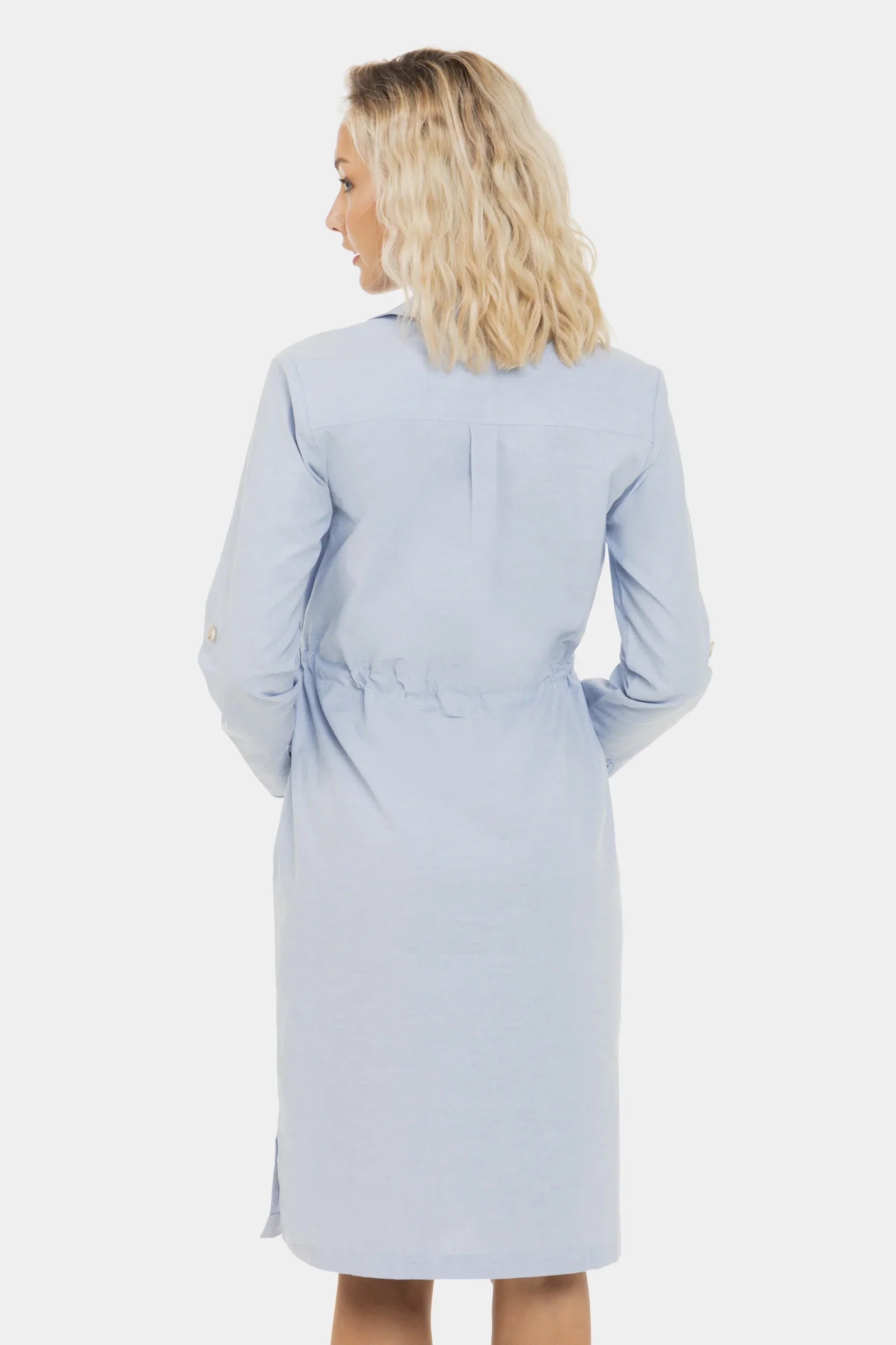 • Rochia este confecționată din material cu compoziție de bumbac în albastru deschis