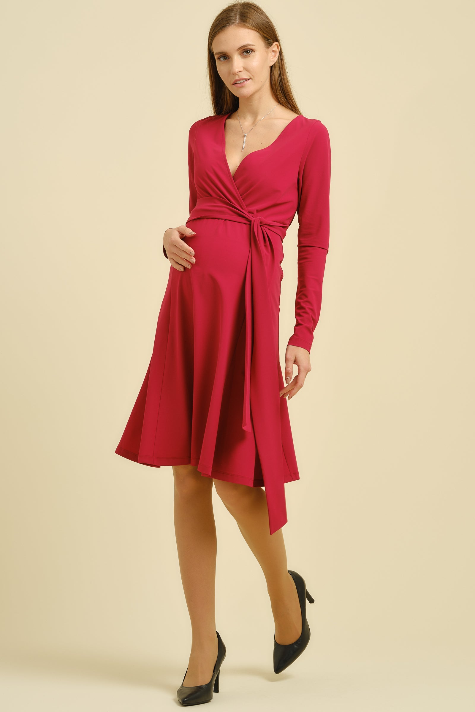 Rochie evazată pentru gravide și alăptare - roșu zmeuriu