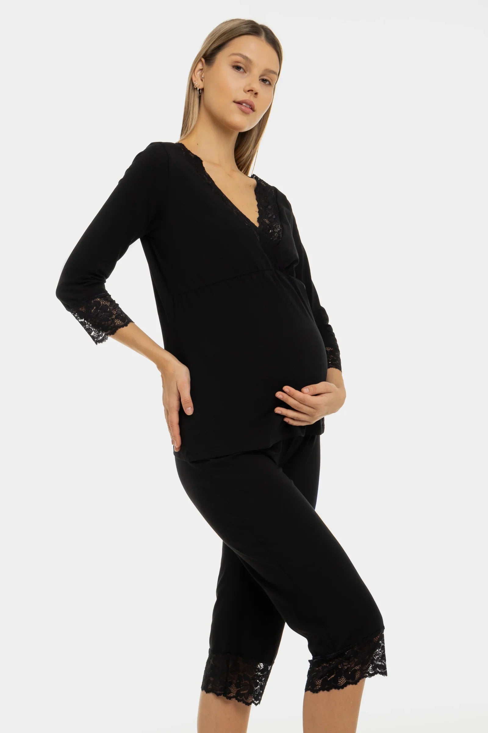 Pijama pentru gravide și alăptare cu dantelă