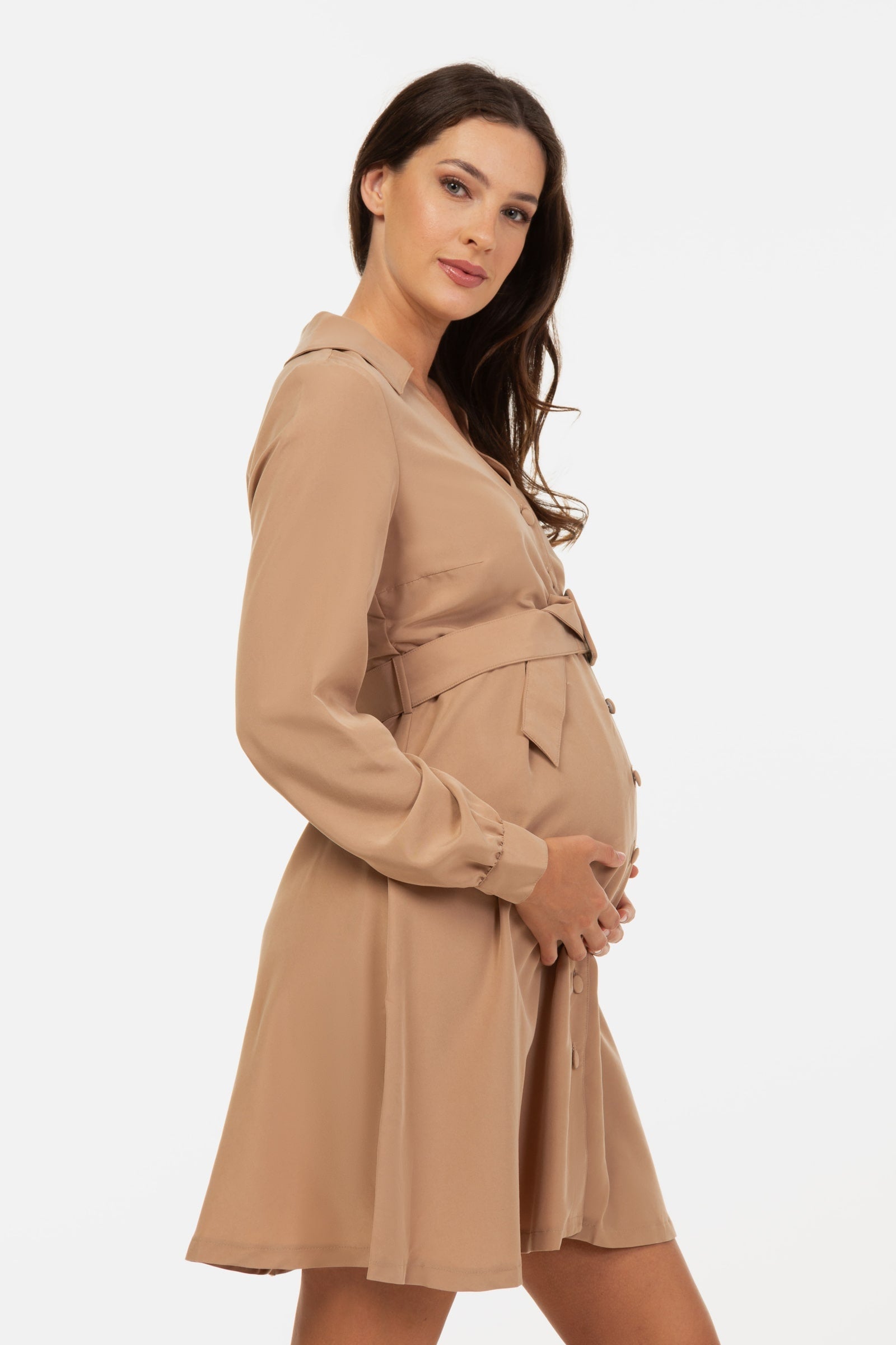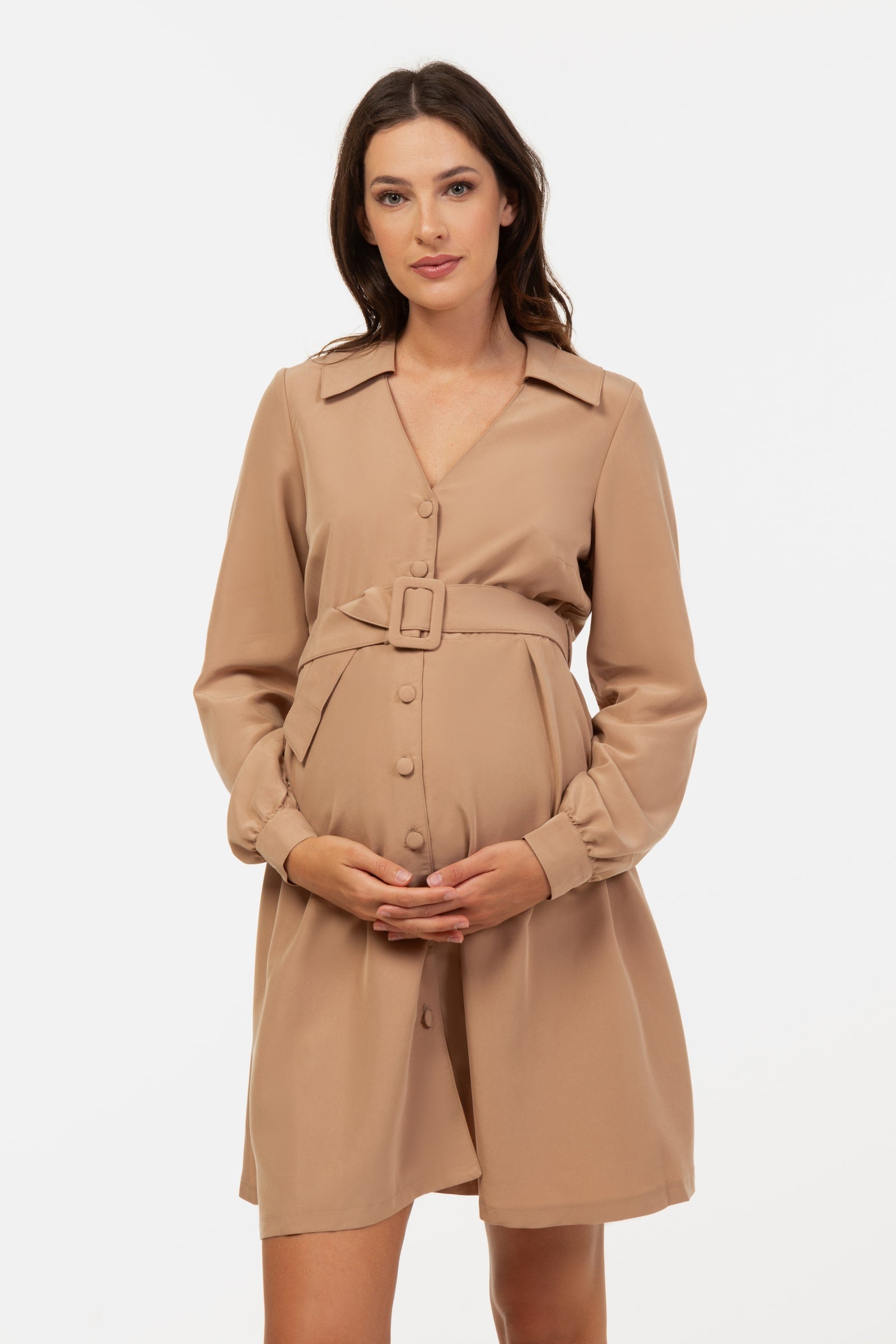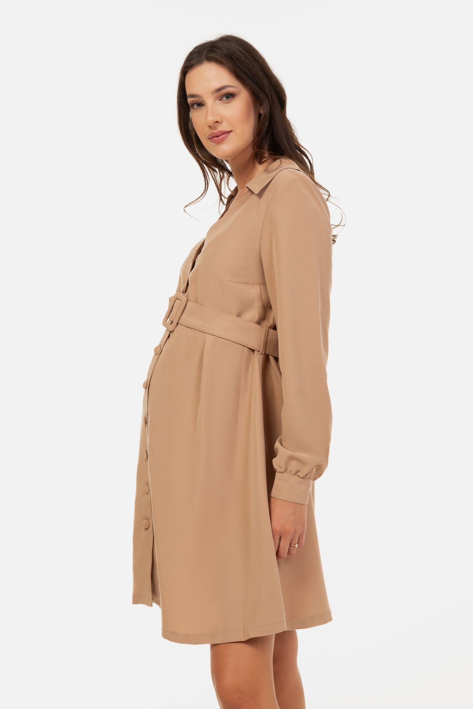 Rochie pentru gravide și alăptare cu guler - bej