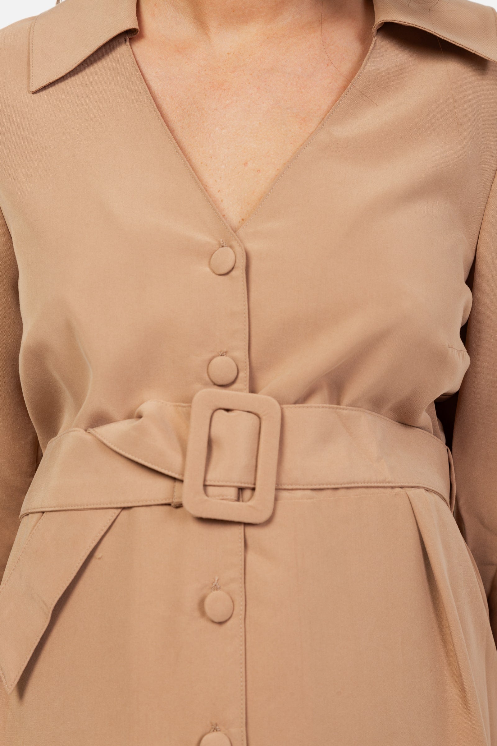 - Decolteu în V cu guler