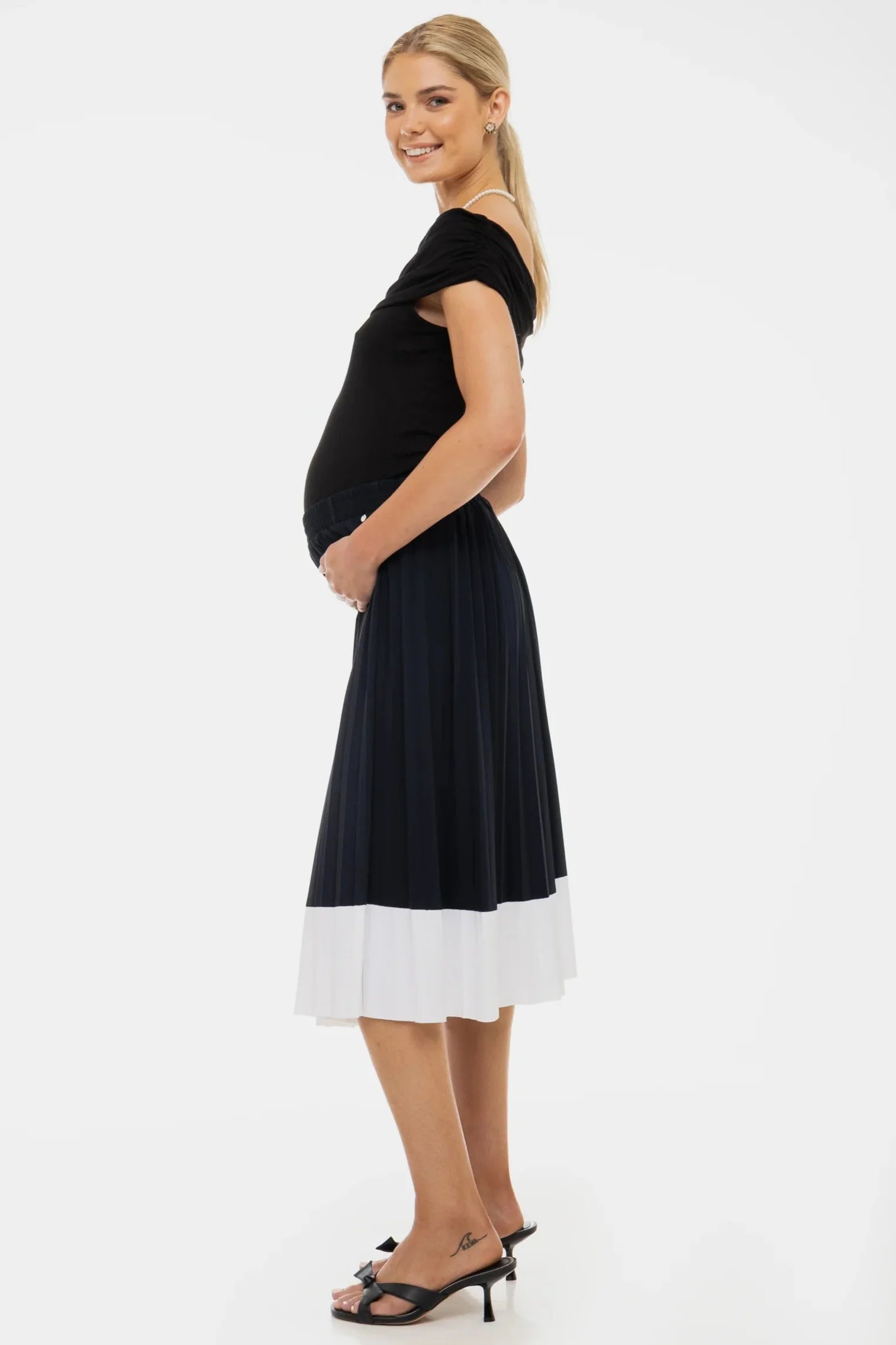 - Fustă plisată pentru gravide, din material elastic, în bleumarin