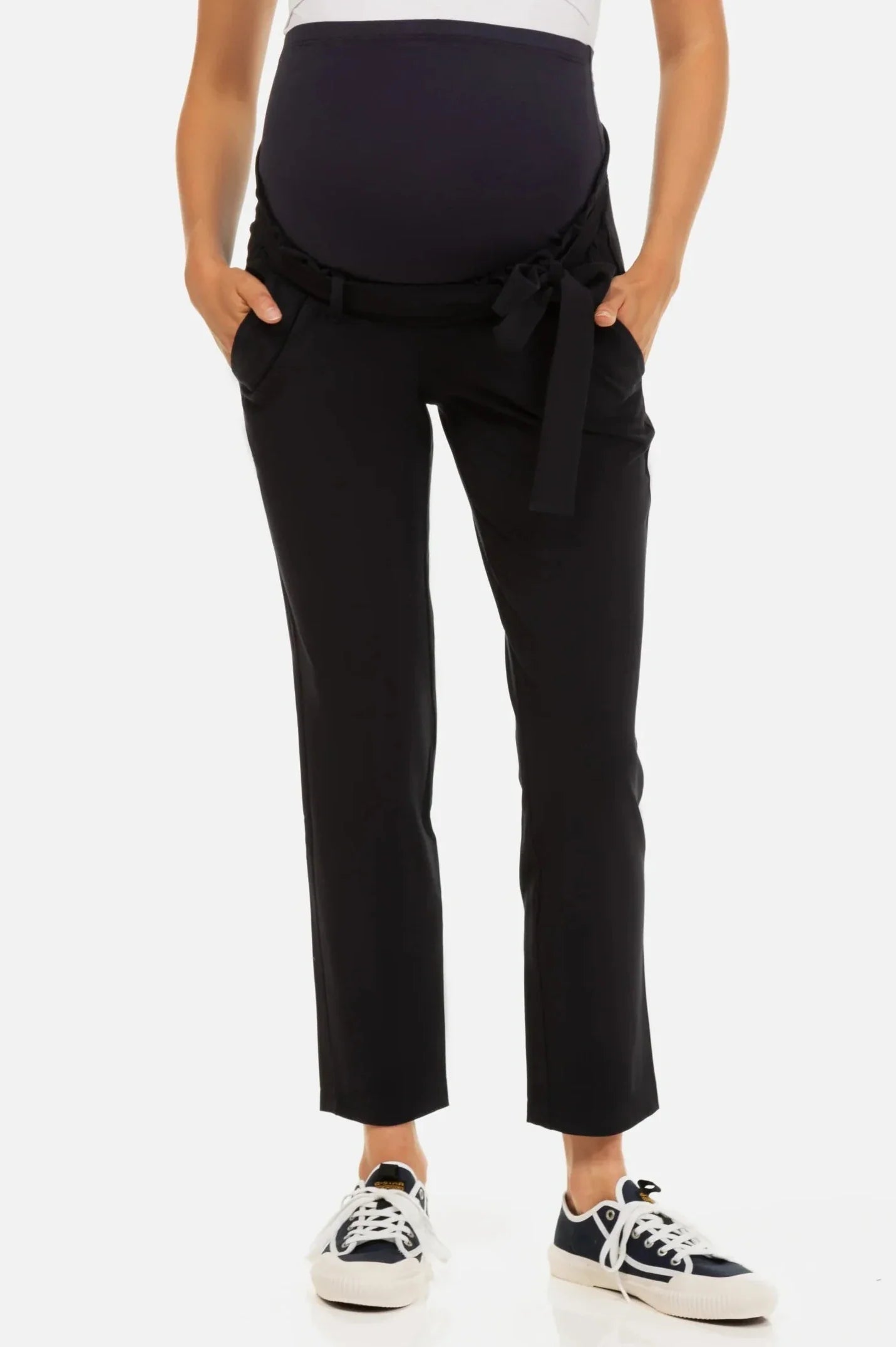 Pantaloni pentru gravide cu pliuri în talie - albastru închis