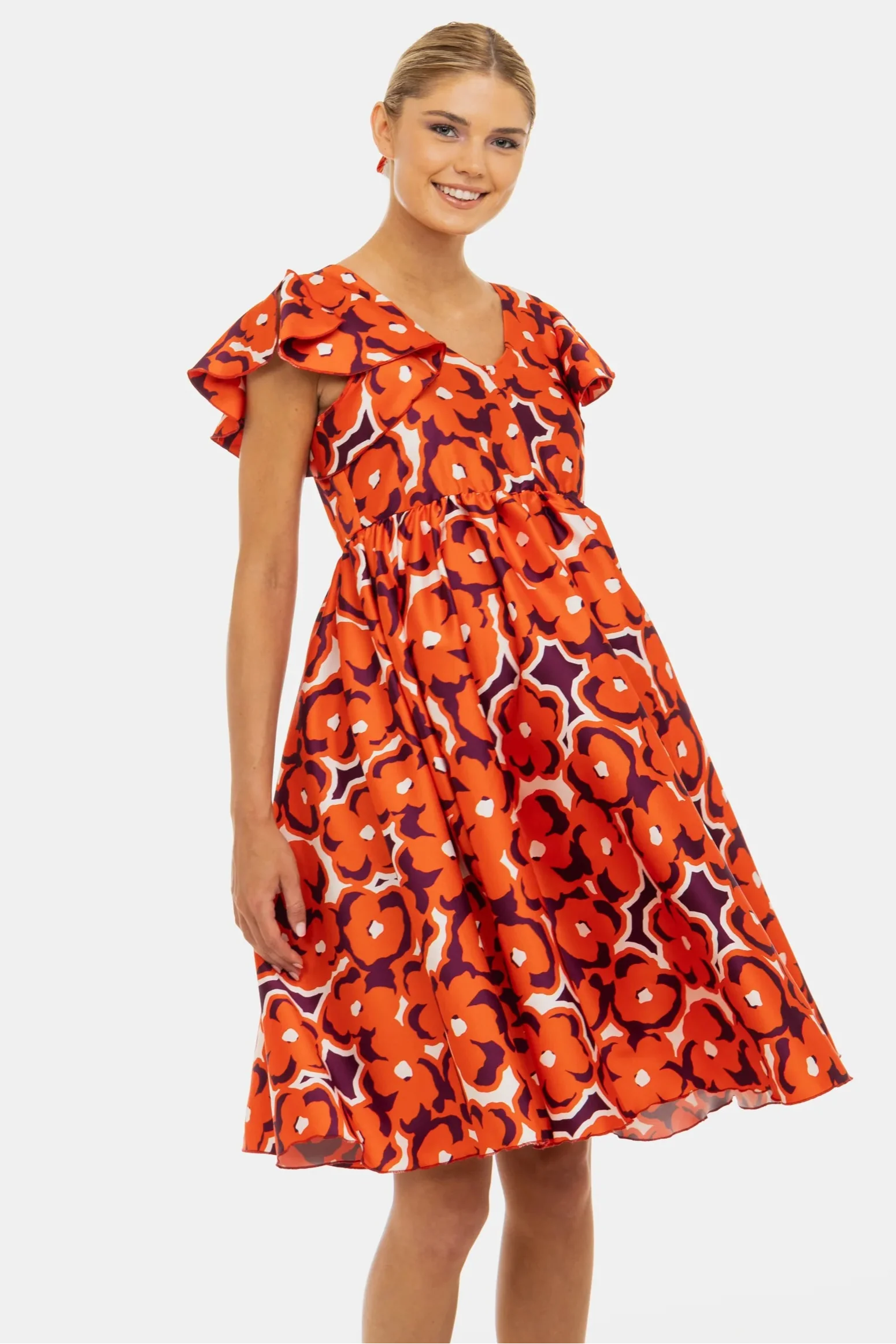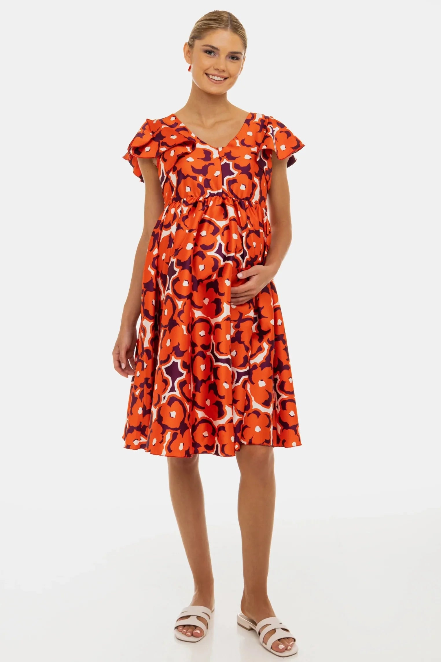- Rochie pentru gravide și alăptare din satin strălucitor, cu imprimeu