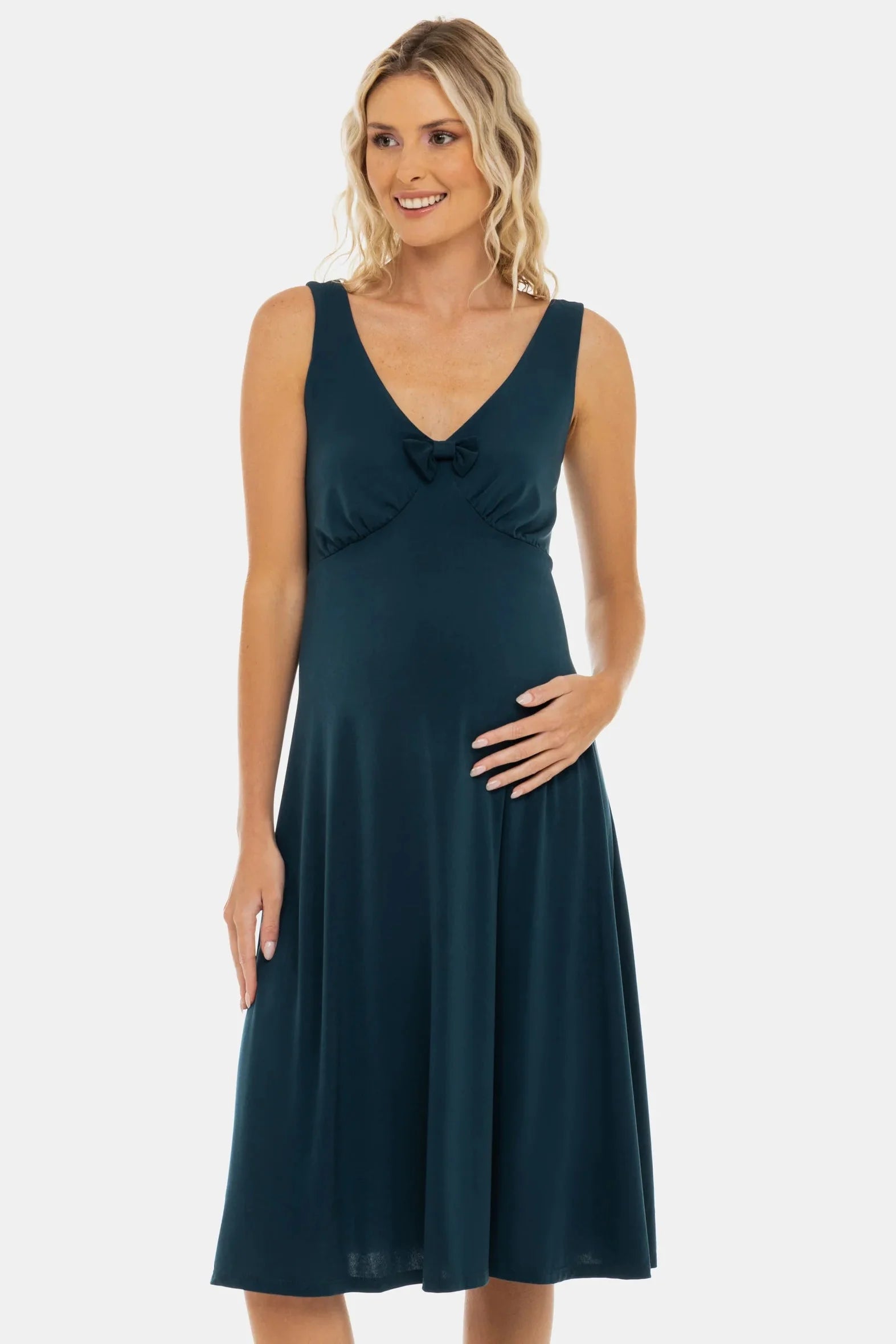 Rochie pentru gravide din material vaporos cu croială lejeră care cade frumos – elegantă și confortabilă, potrivită atât pentru zile obișnuite, cât și pentru ocazii speciale.