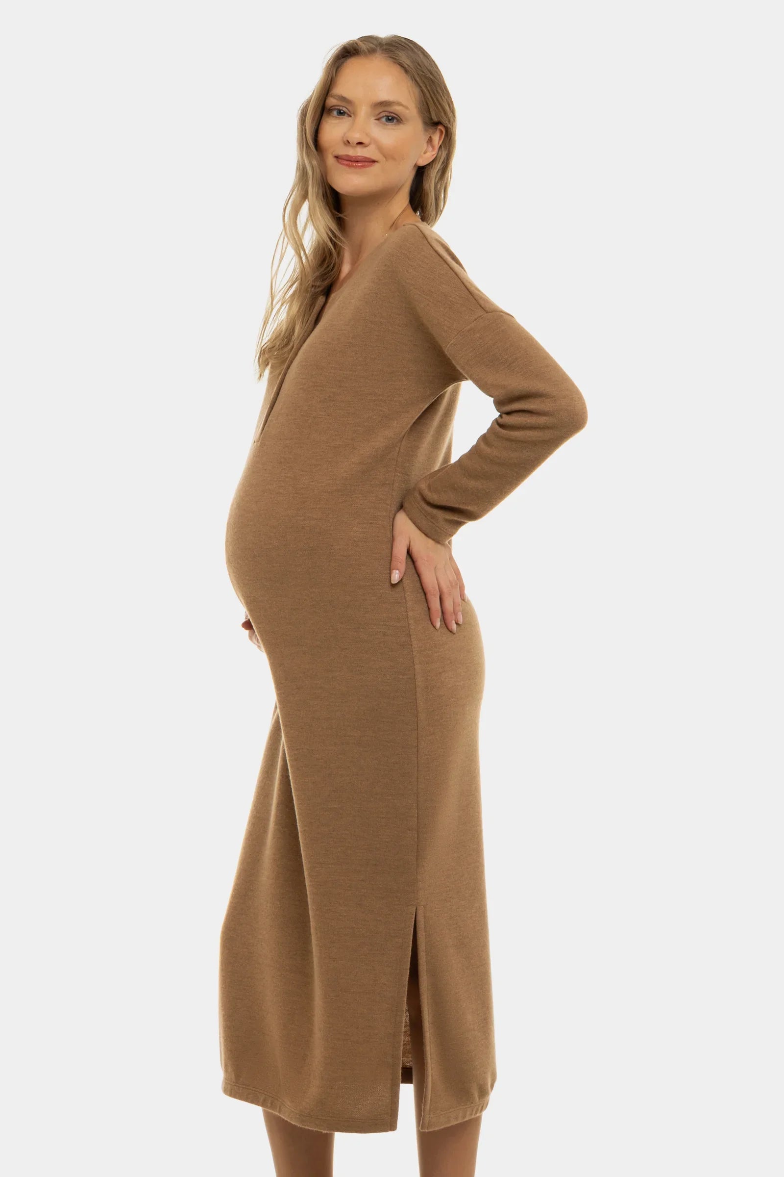 - Rochie lungă, realizată din tricot moale în culoare caramel