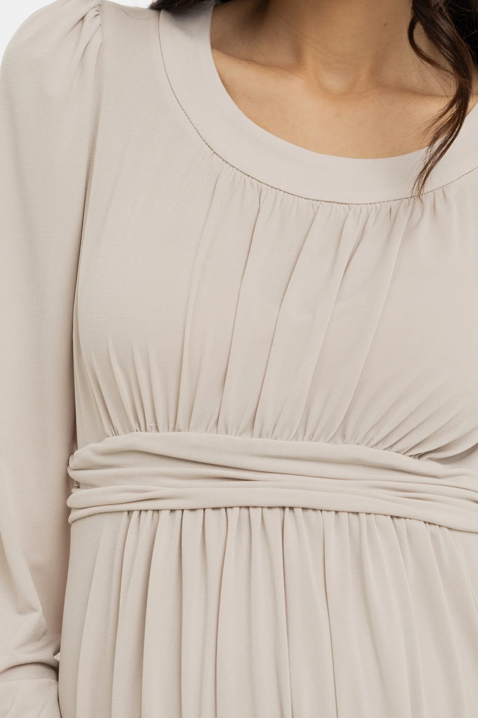 Creată pentru momentele speciale, această rochie pentru gravide îmbină confortul și eleganța, având drapaje frumoase și un material moale cu cădere lejeră.