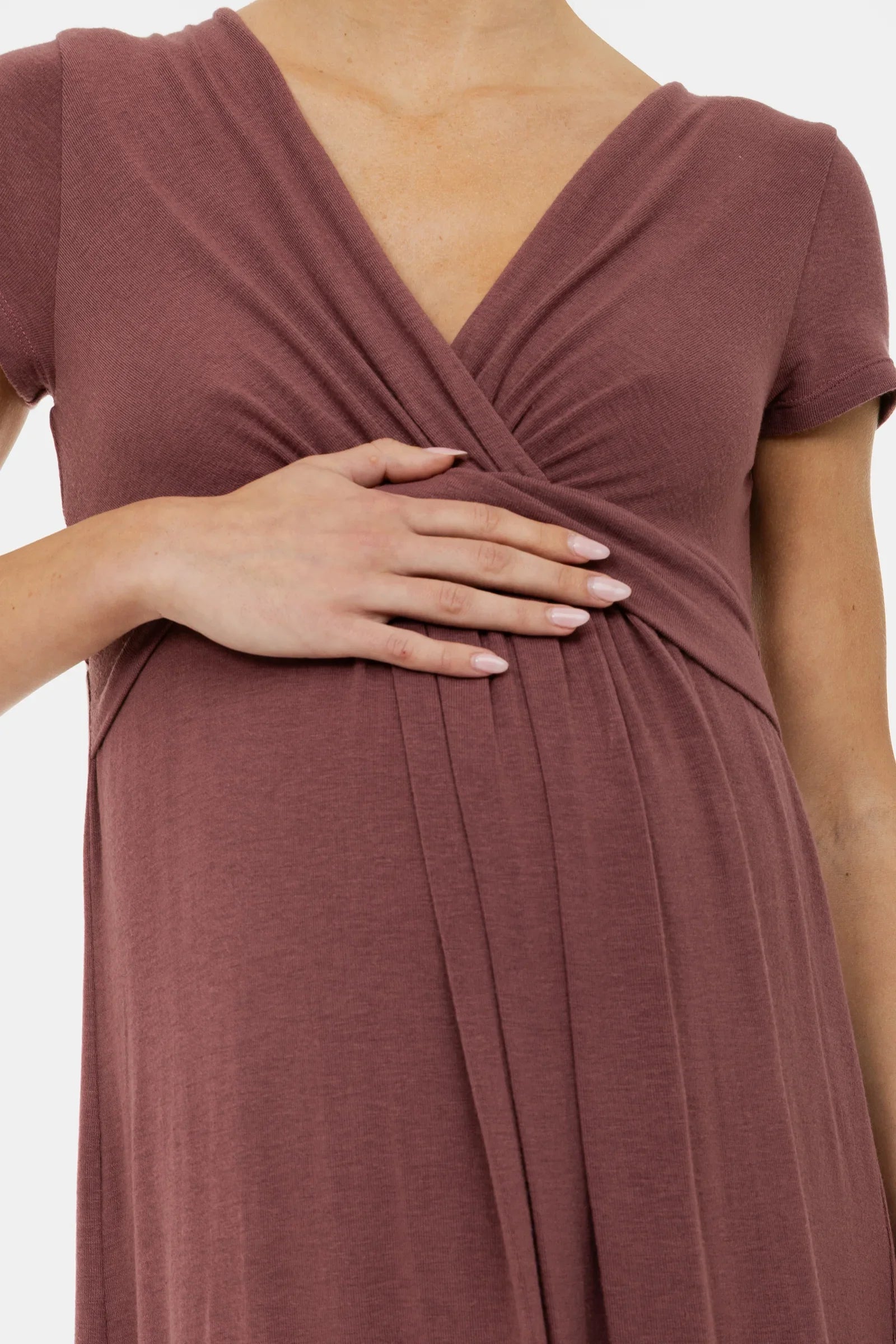 Rochie pentru gravide și alăptare cu curea decorativă - cenușă trandafir