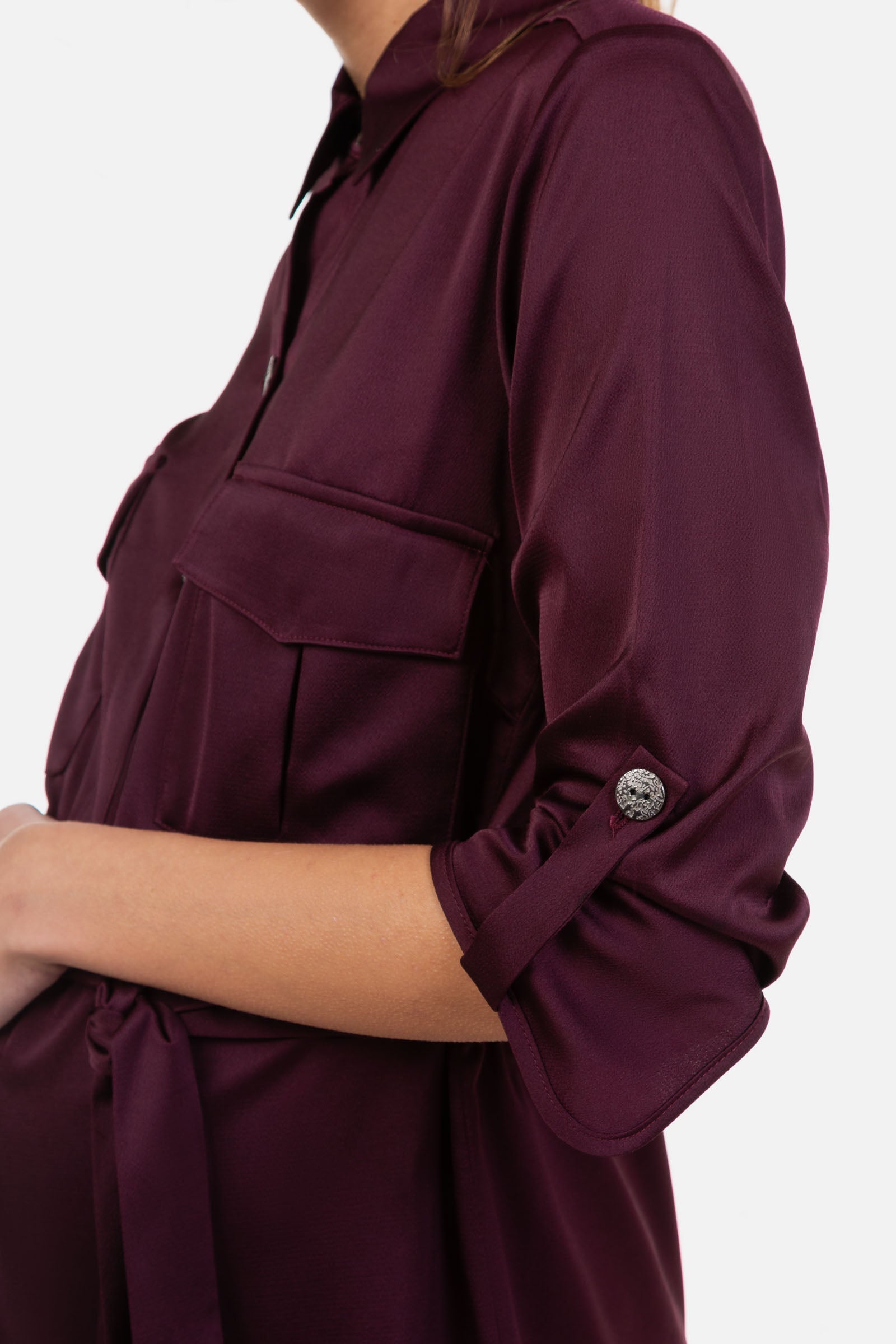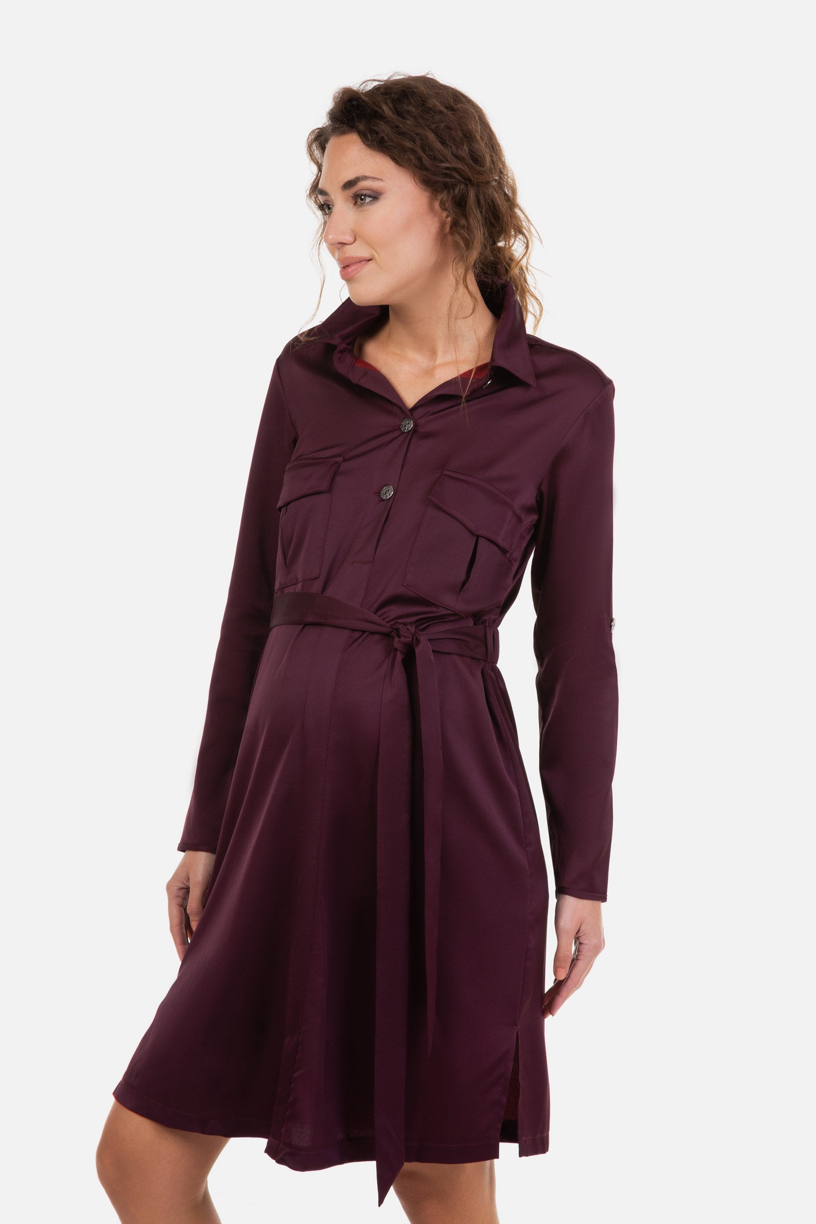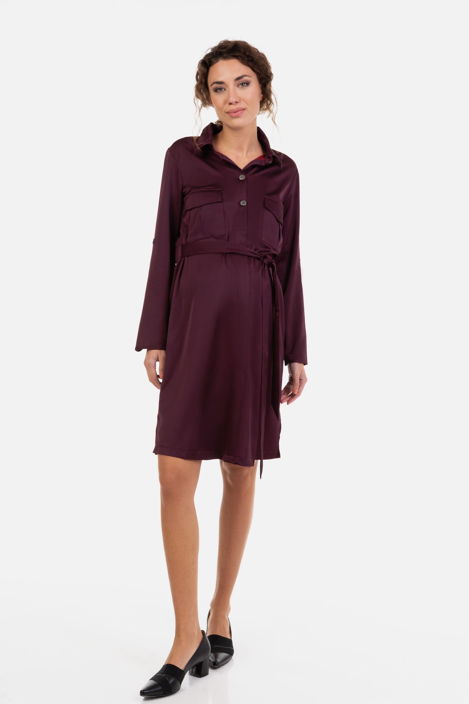 Rochie satinată pentru gravide și alăptare în culoarea visiniu