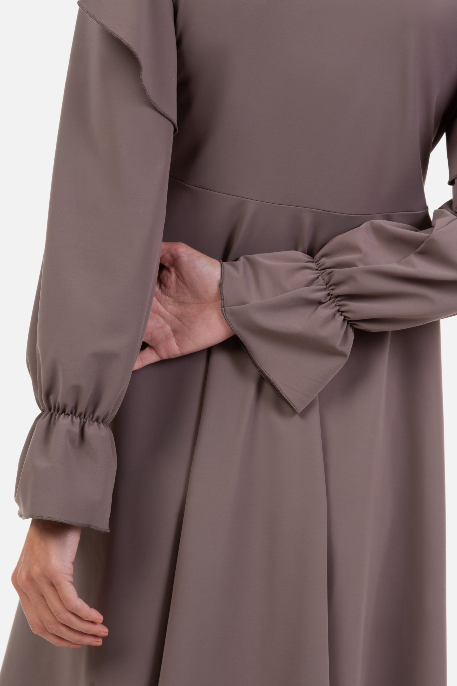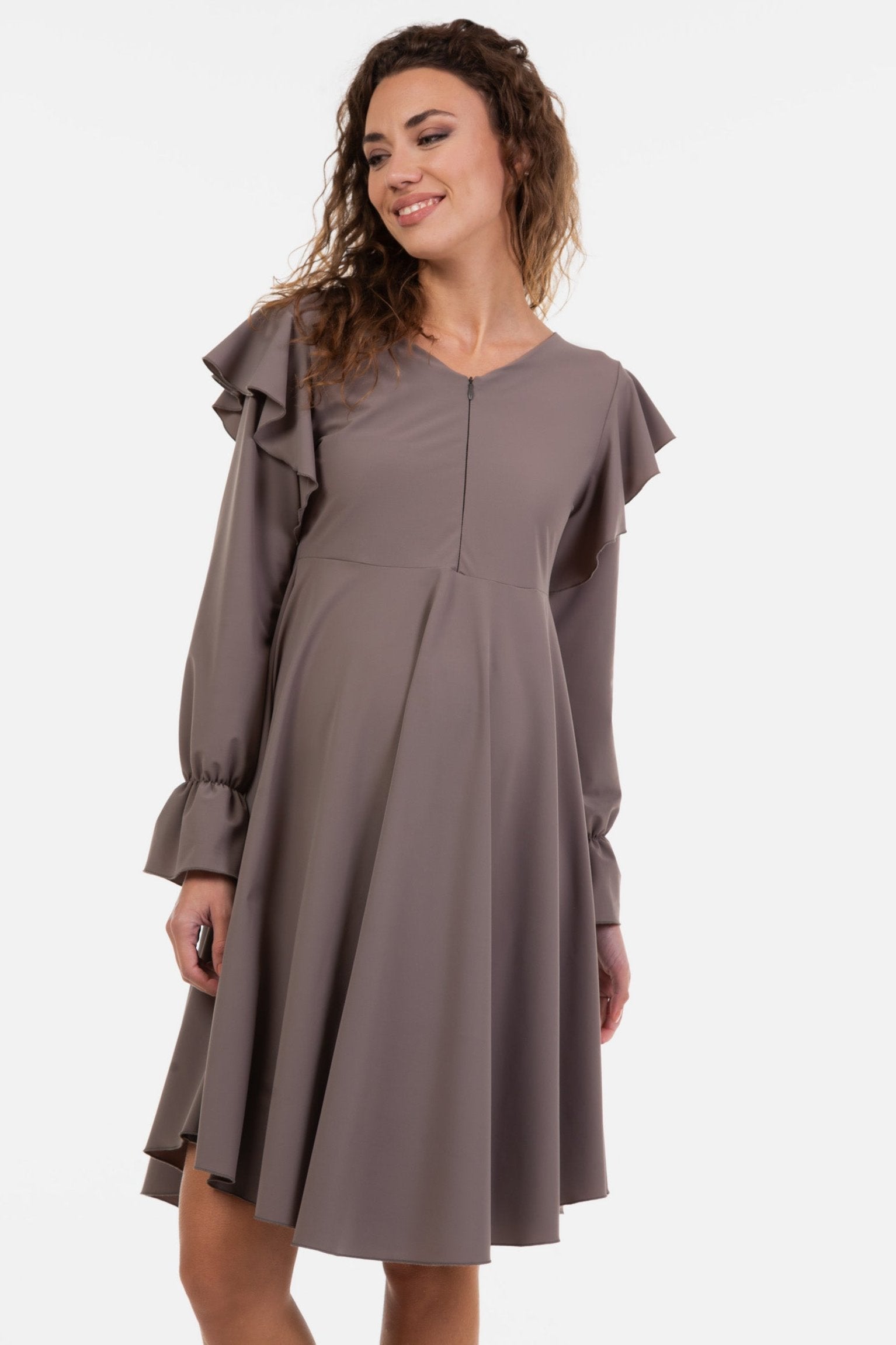 Rochie vaporoasă gravide și alăptare cu mâneca lungă - mocca