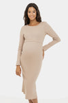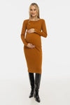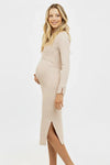 • Rochie pentru gravide din tricot ripsat din bumbac, în culoarea bej