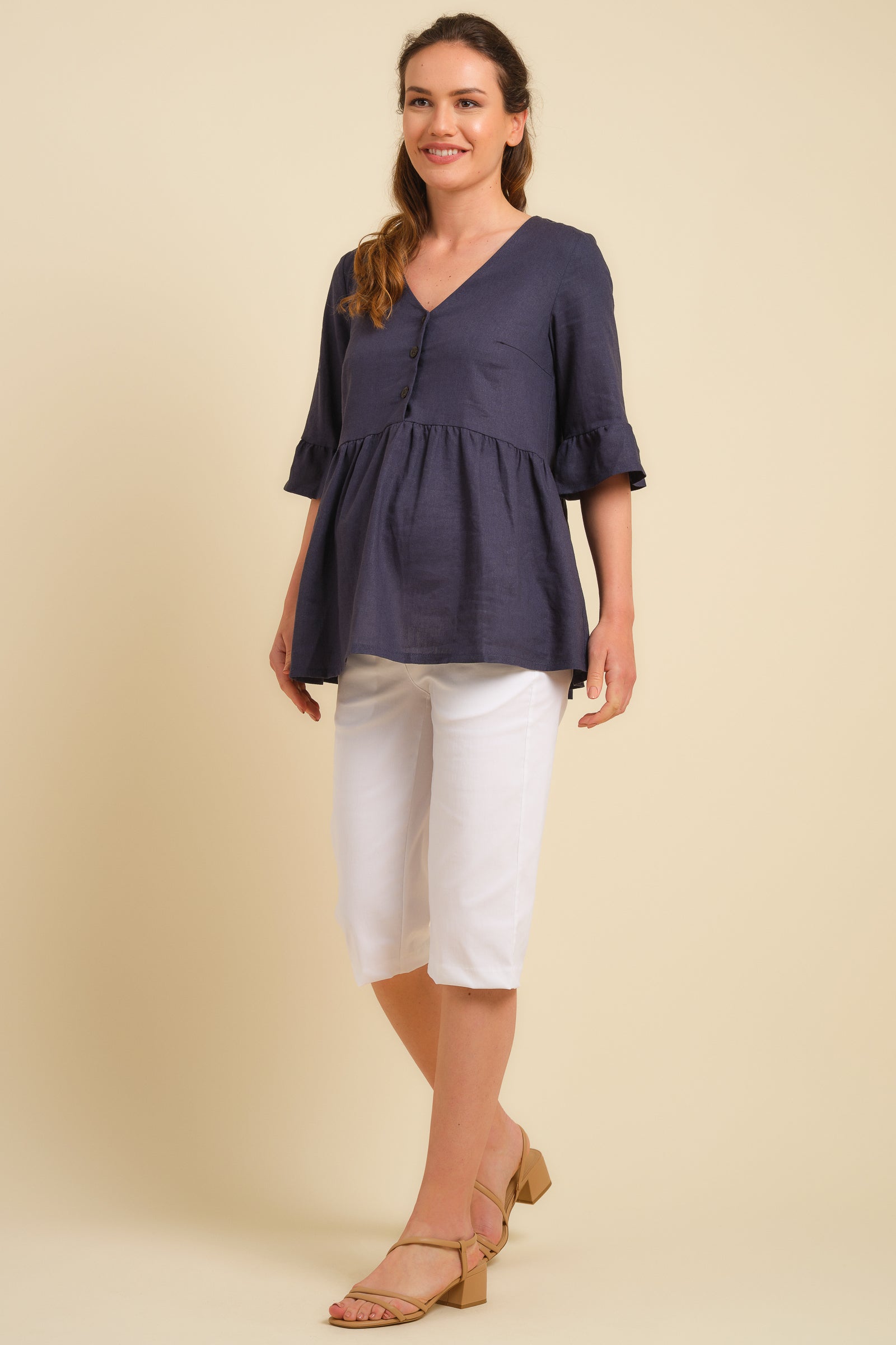Bluză de sarcină cu umerii dezgoliți din amestec de in