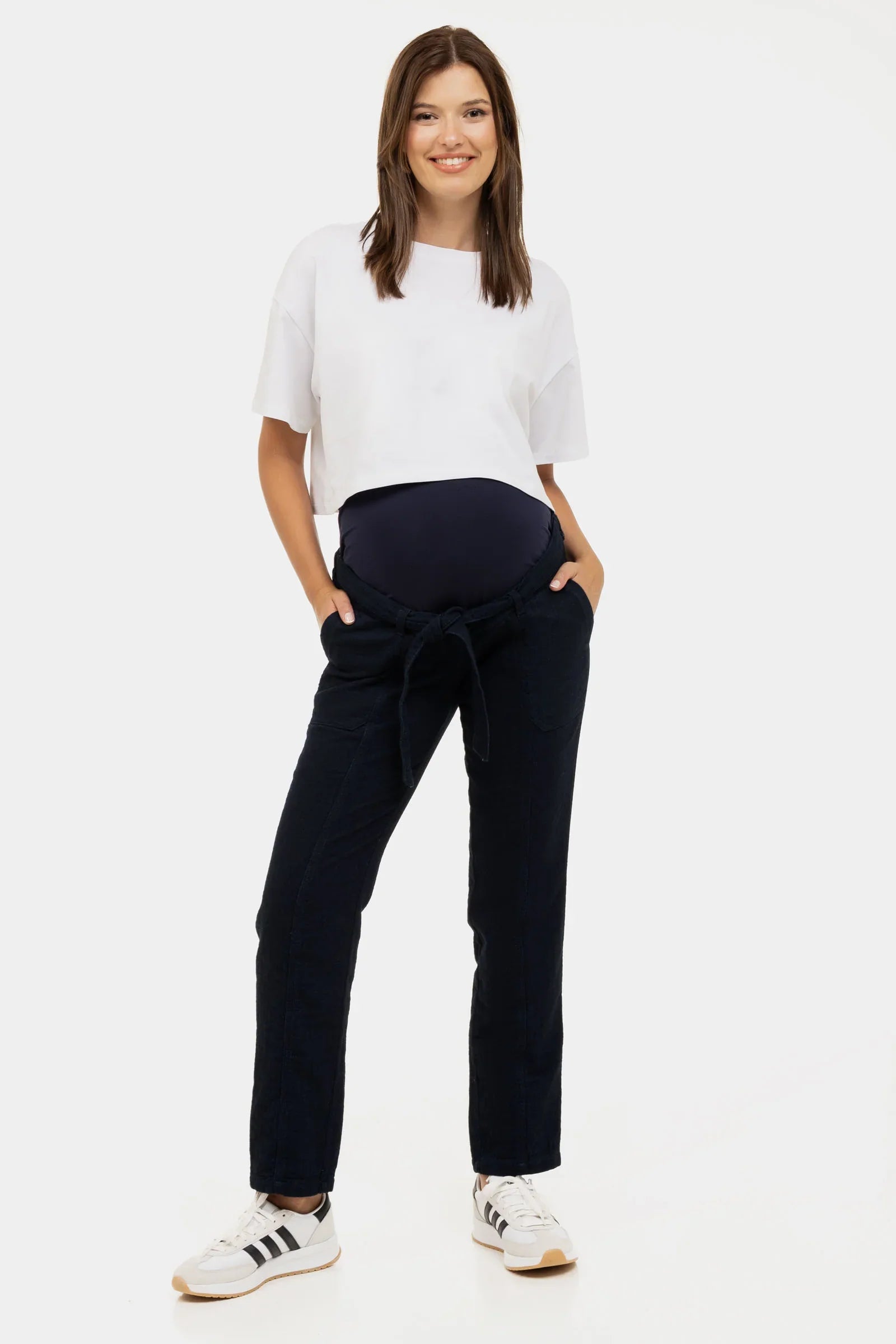 • Blugii pentru gravide sunt fabricați din denim japonez din bumbac, de culoare albastru închis