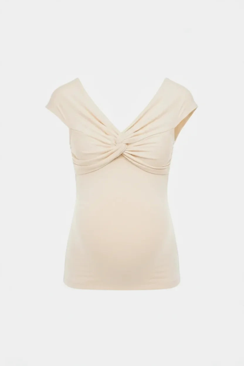 Bluză elegantă pentru gravide cu nod decorativ – crem