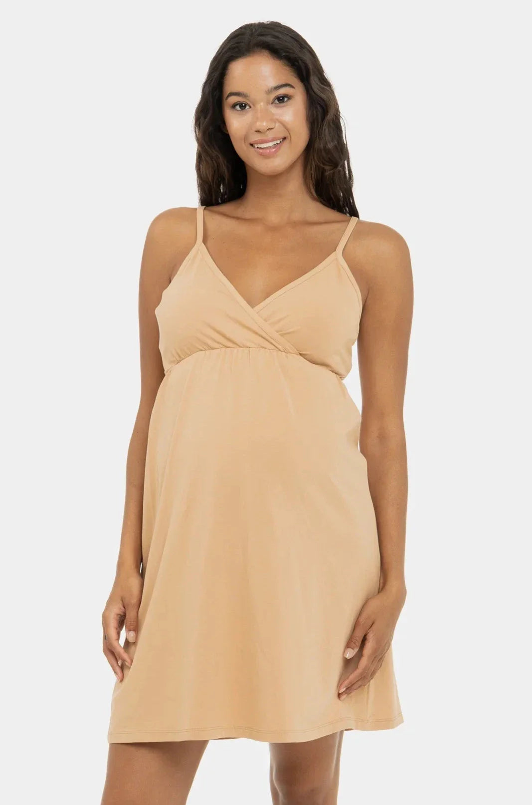 Cămașă de noapte din bumbac gravide și alăptare în bej