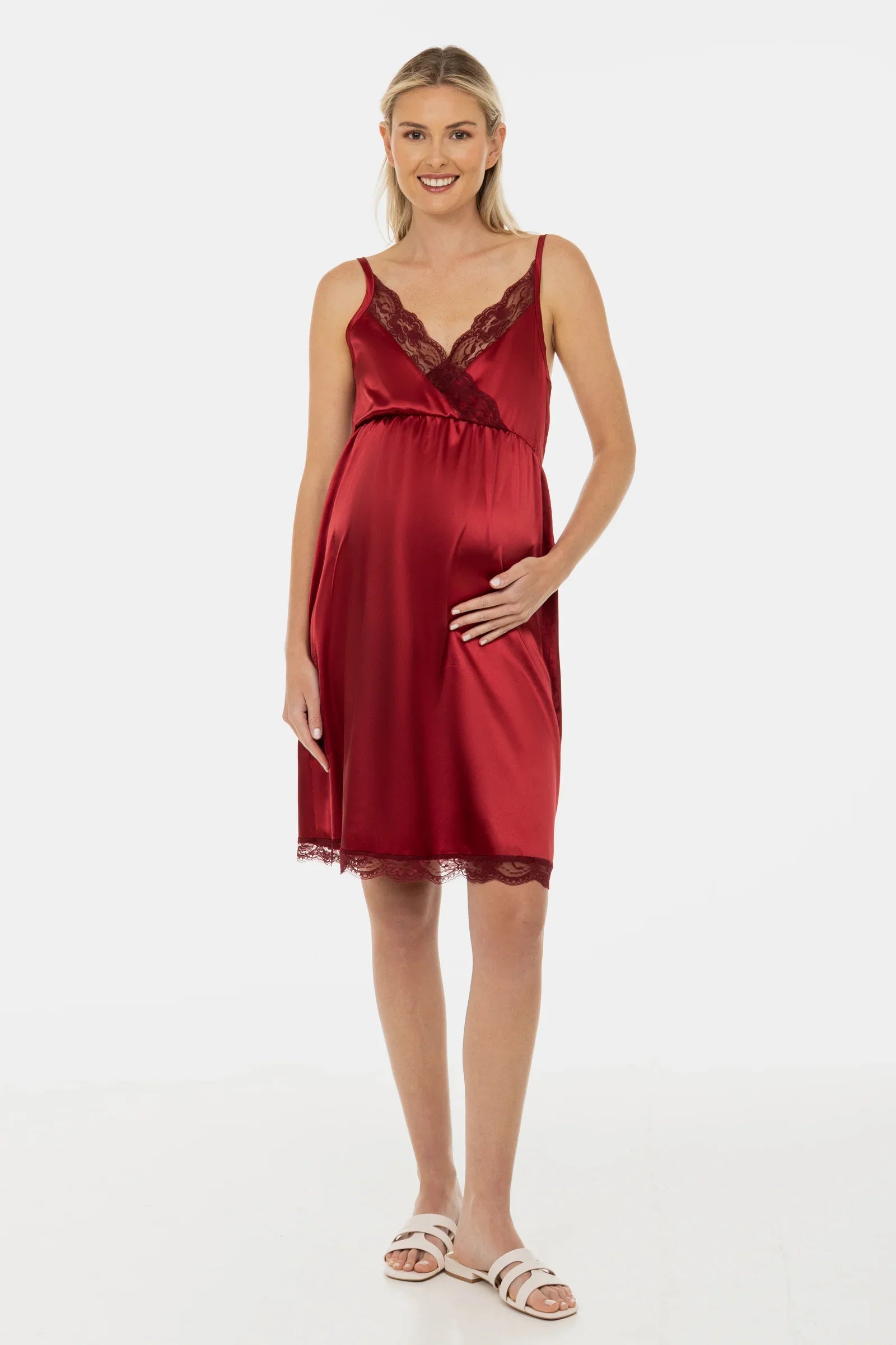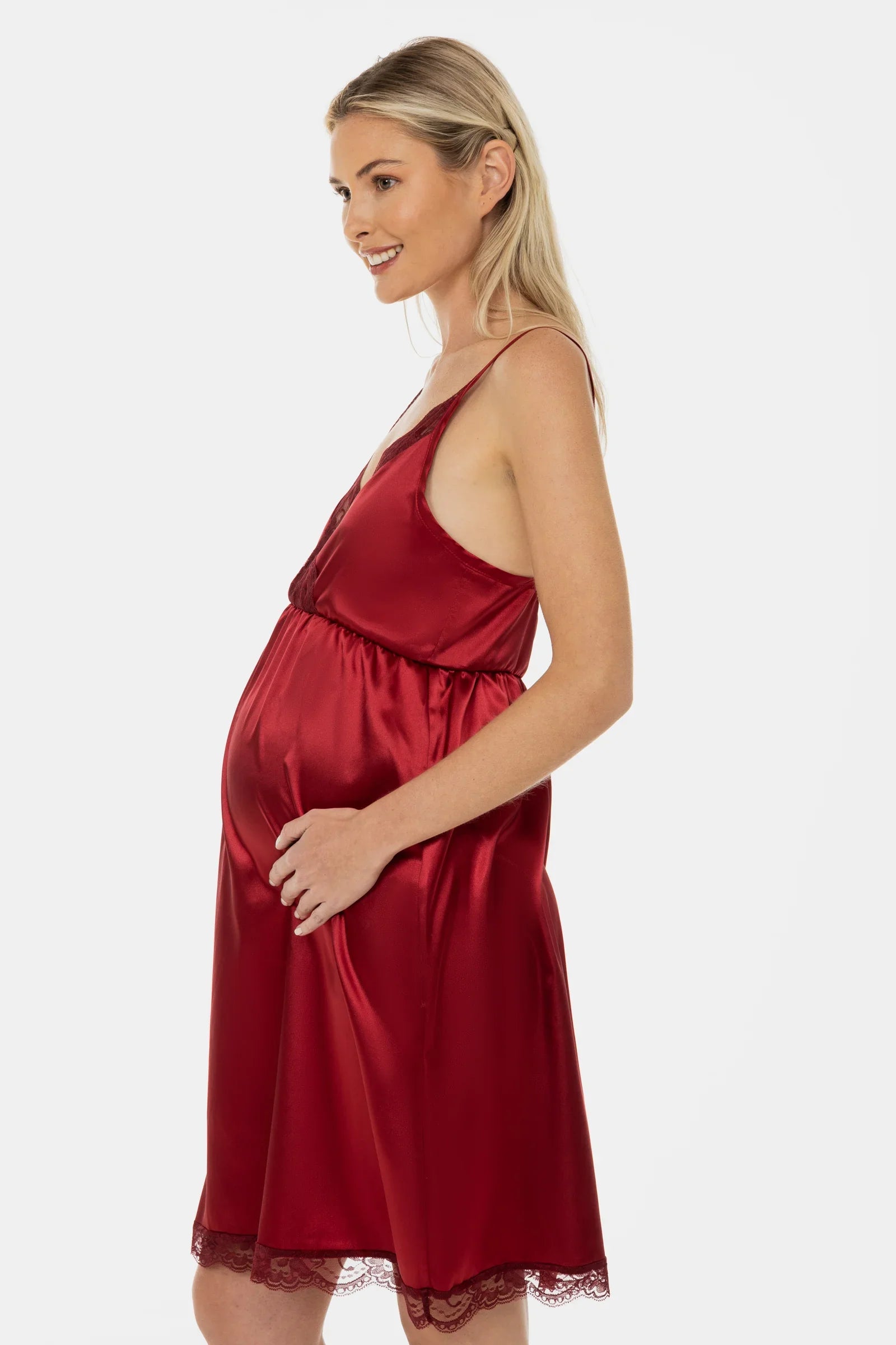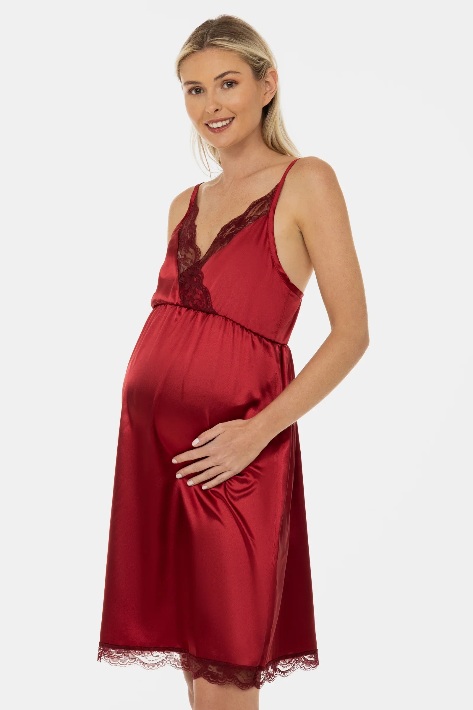 • Cămașă de noapte pentru gravide, din satin moale în visiniu