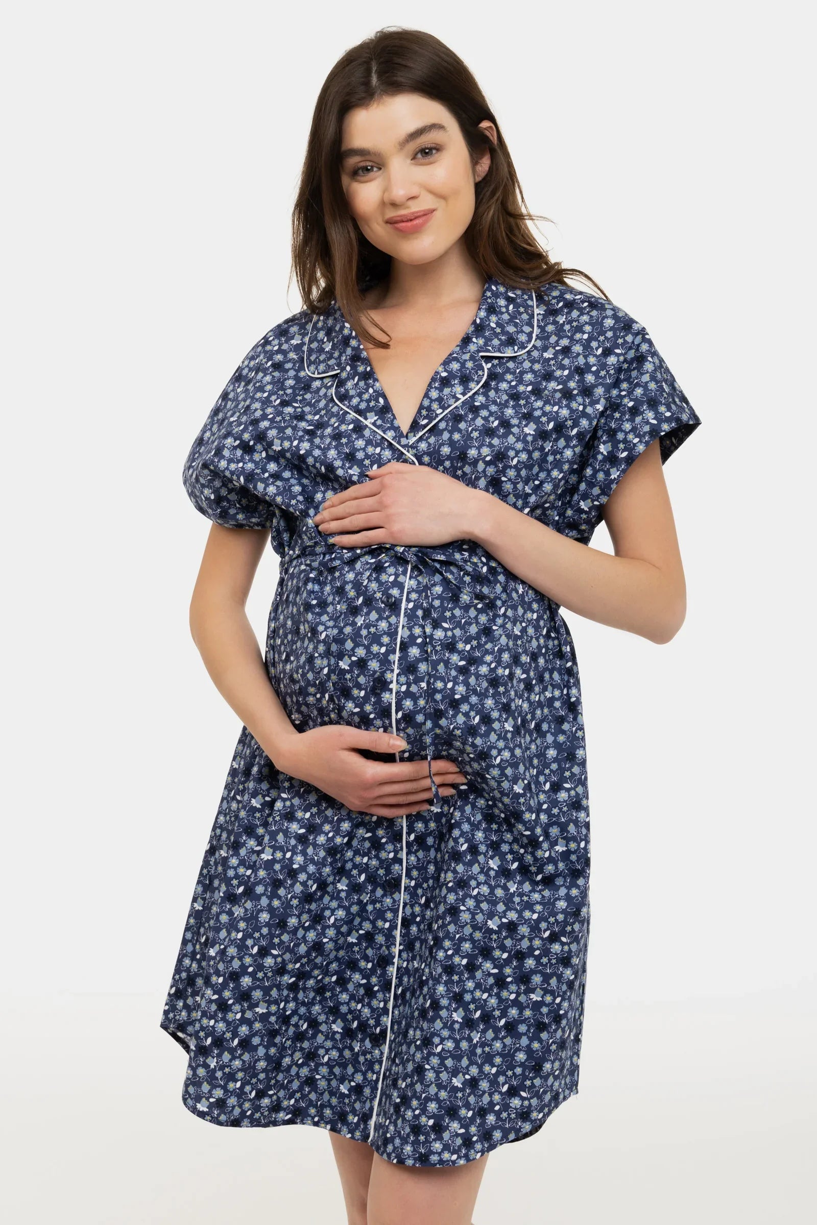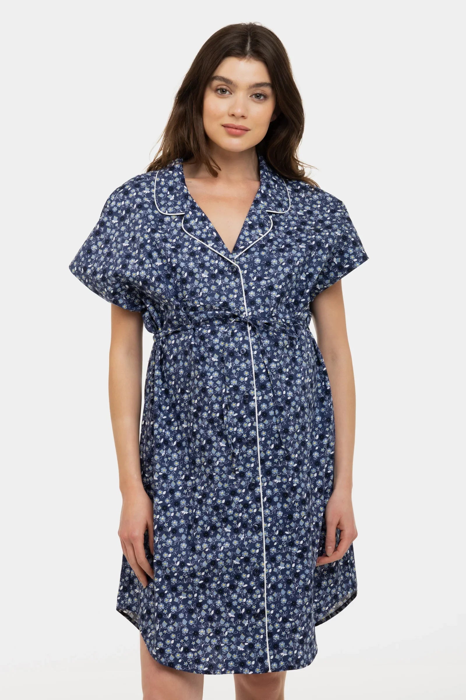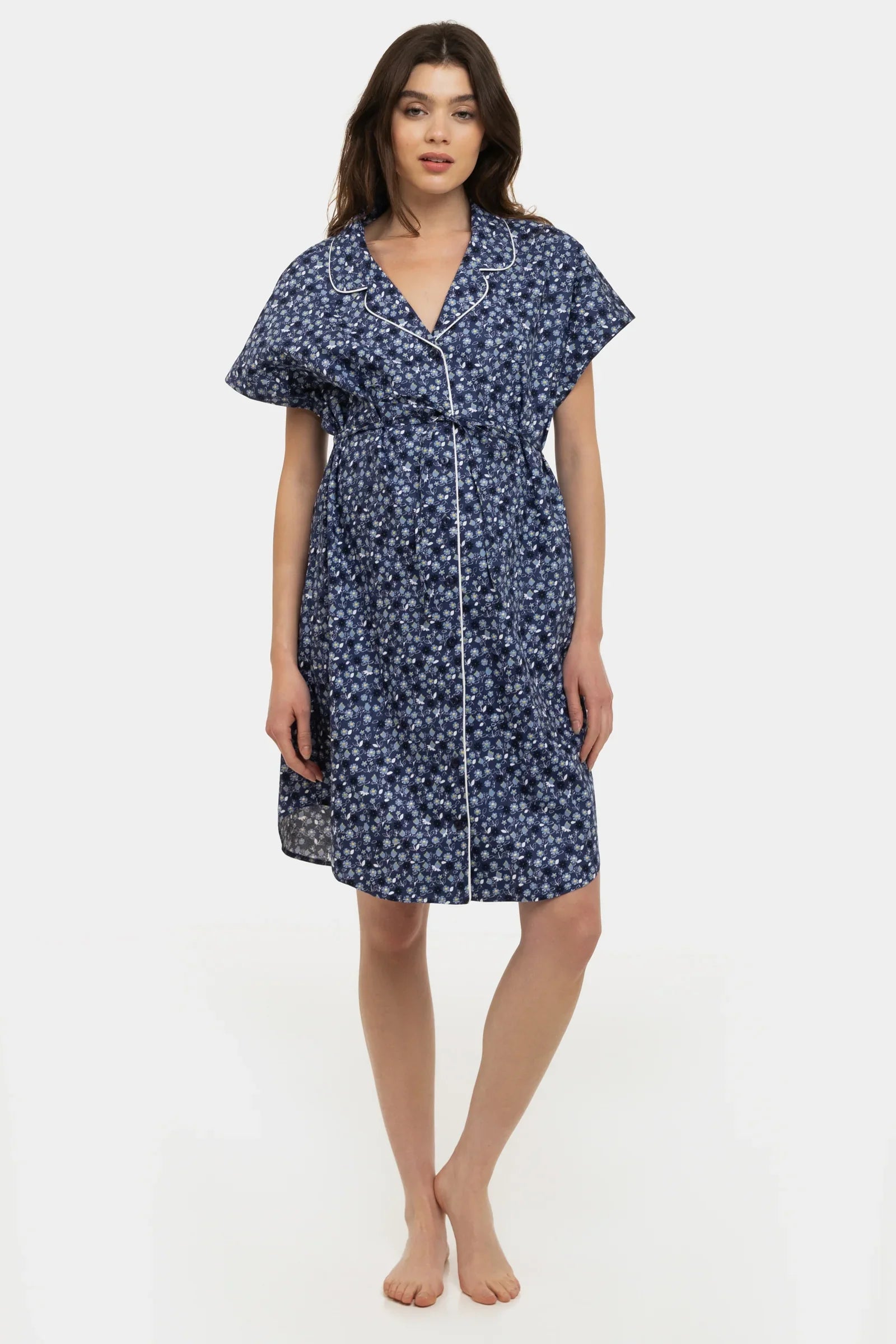 Cămașă floral de noapte din bumbac pentru gravide și alăptare