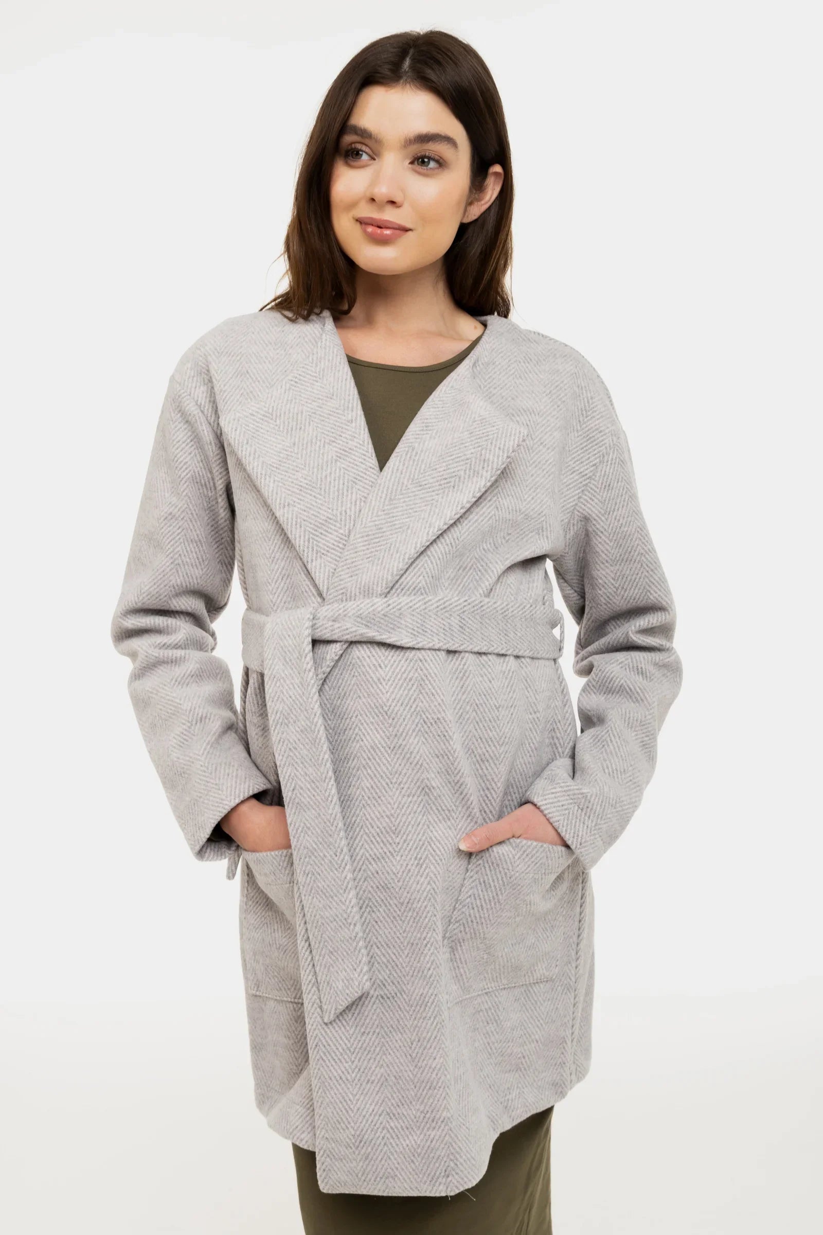 Cardigan gri deschis pentru gravide cu o curea