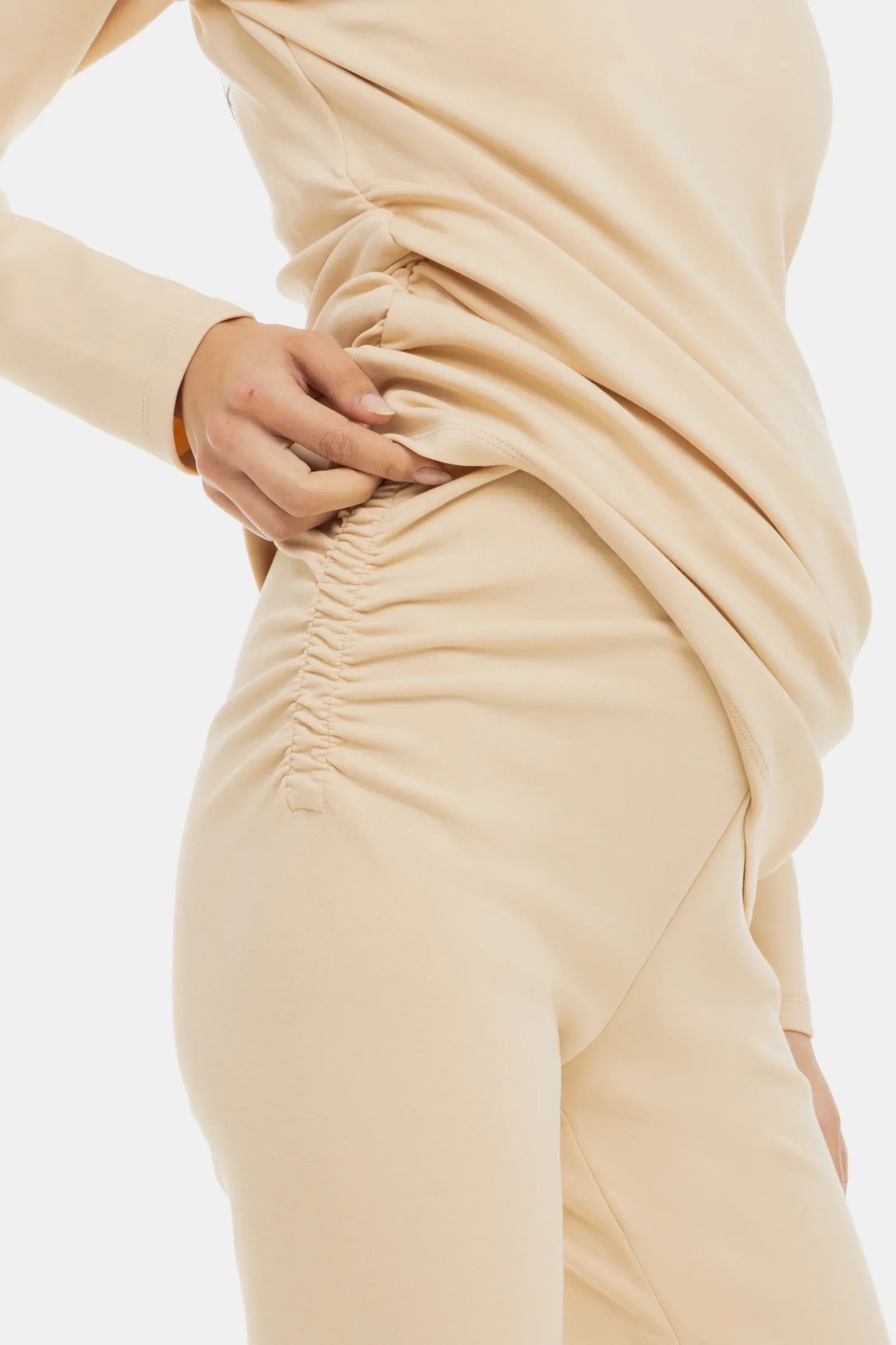 Bluză din bumbac cu încrețituri pentru gravide – bej