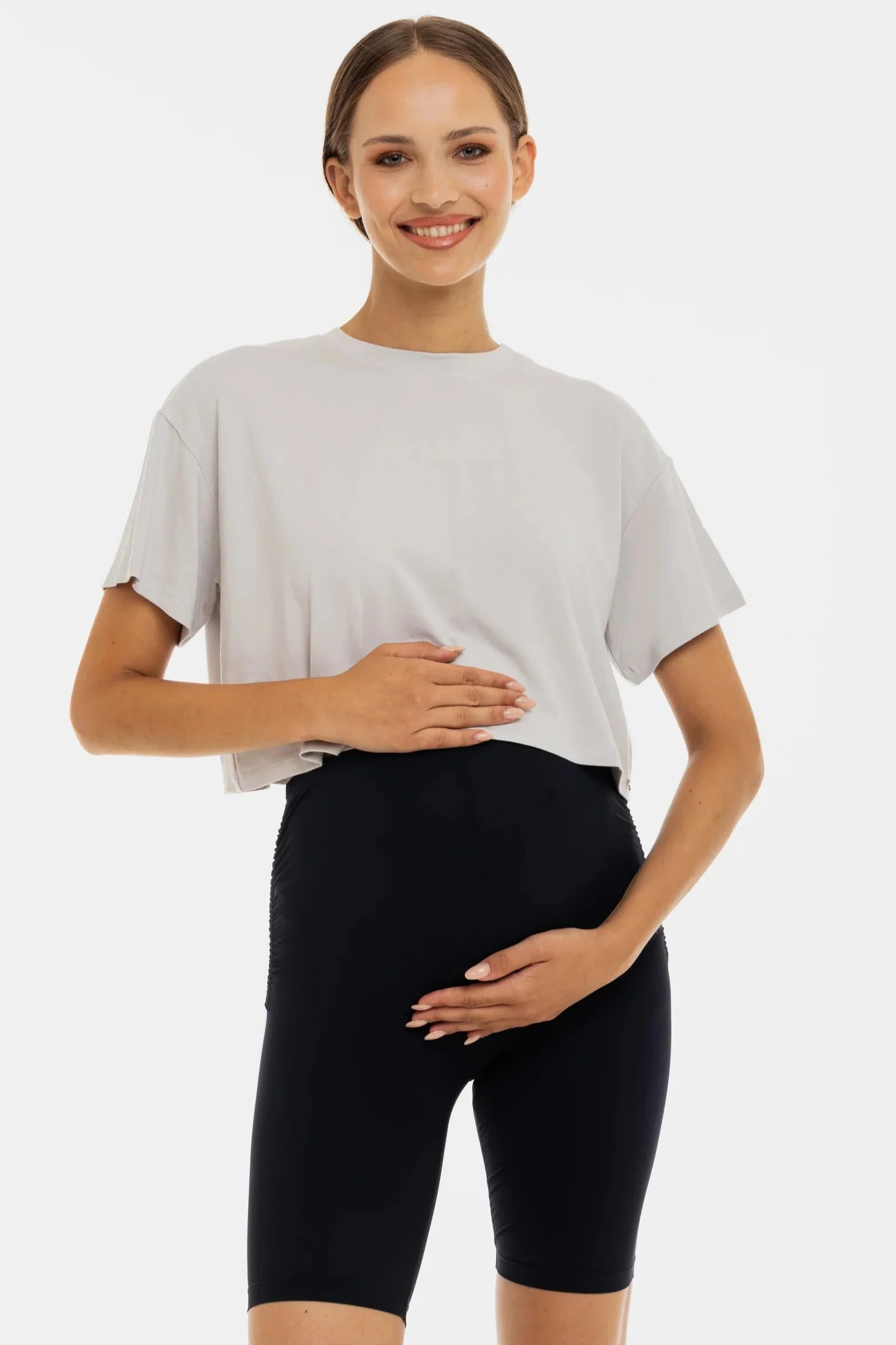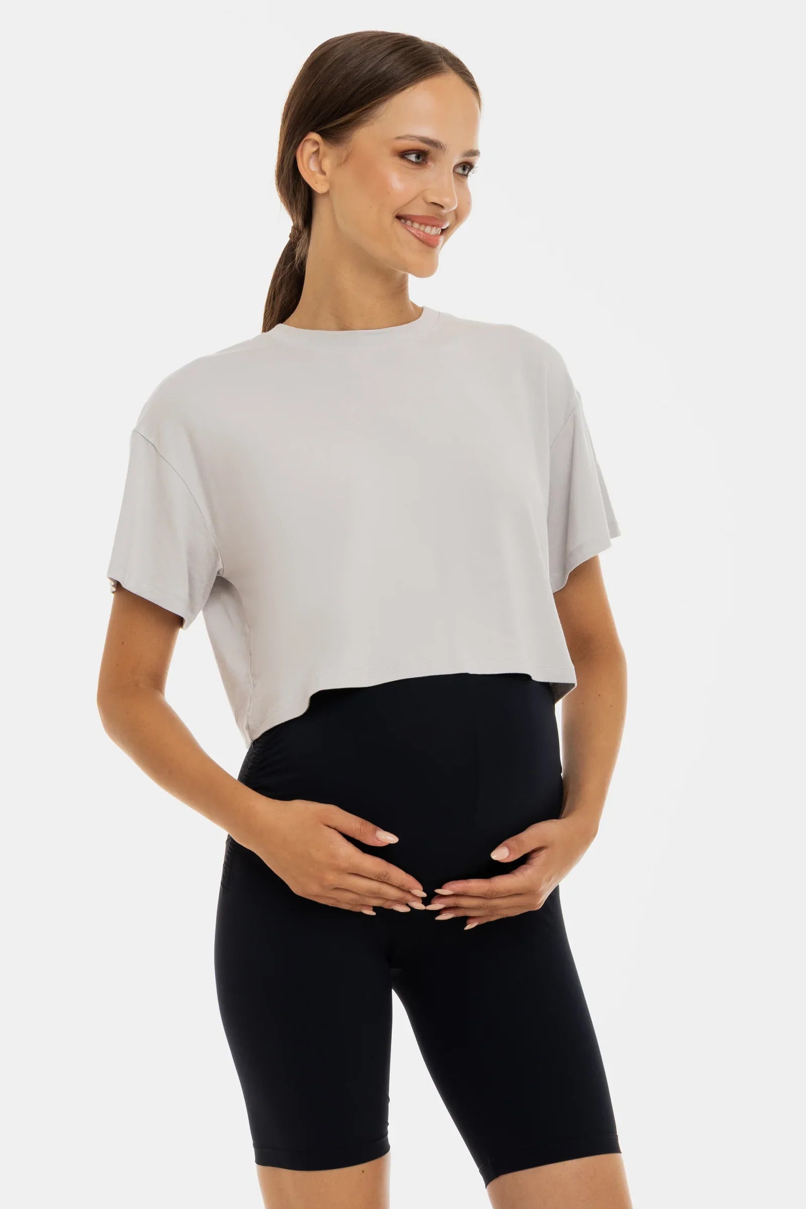 Crop top moale pentru gravide din modal – gri deschis