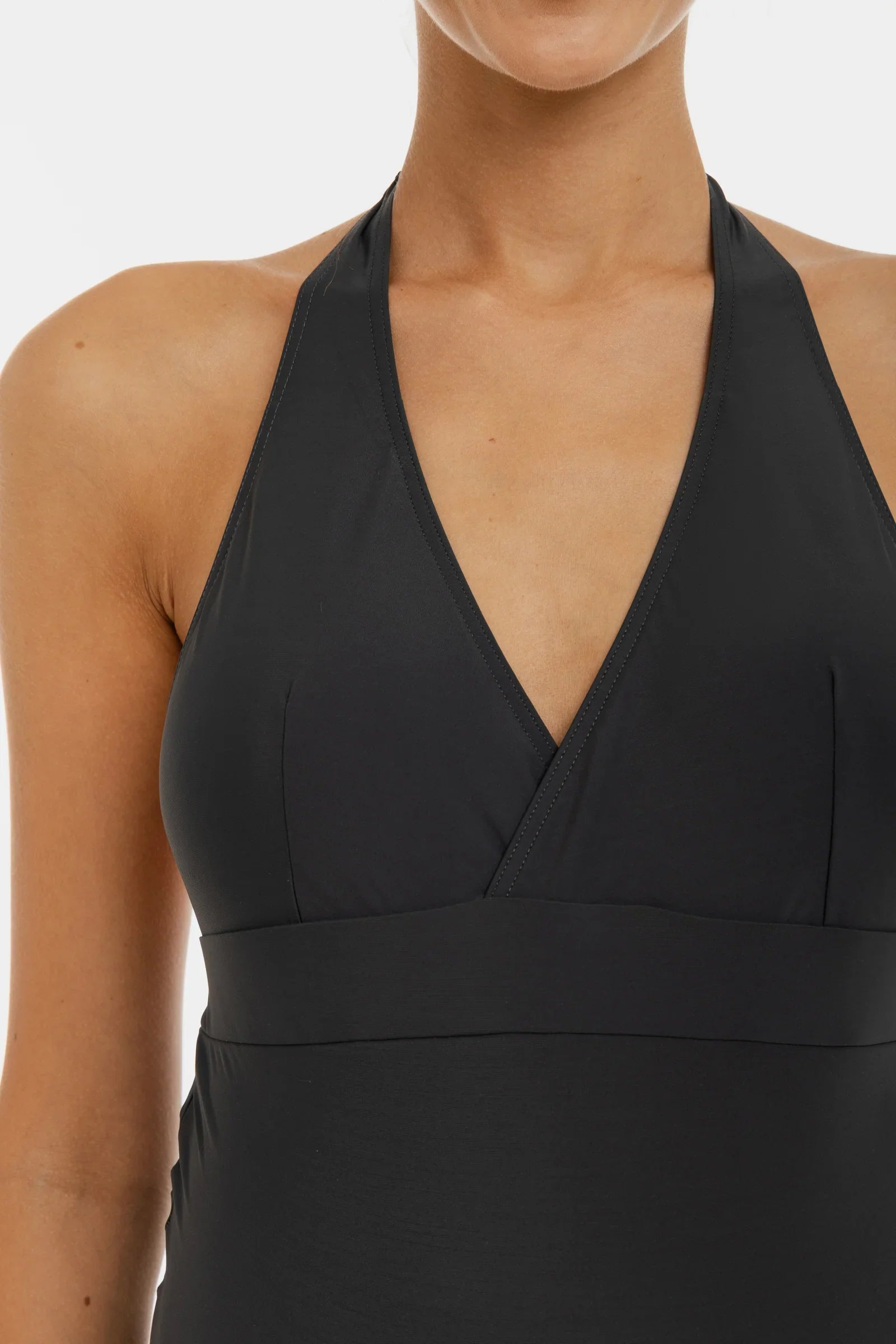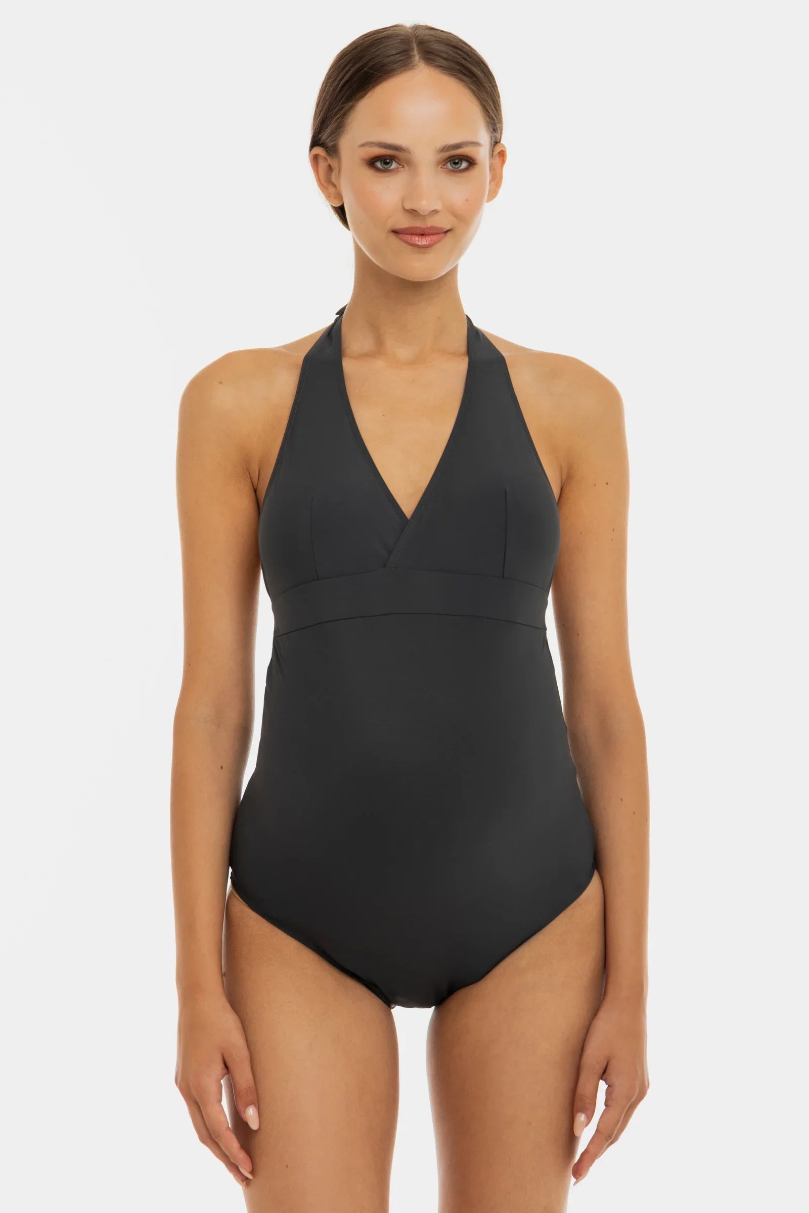 • Costumul de baie este confecționat din material cu uscare rapidă, în culoare grafit