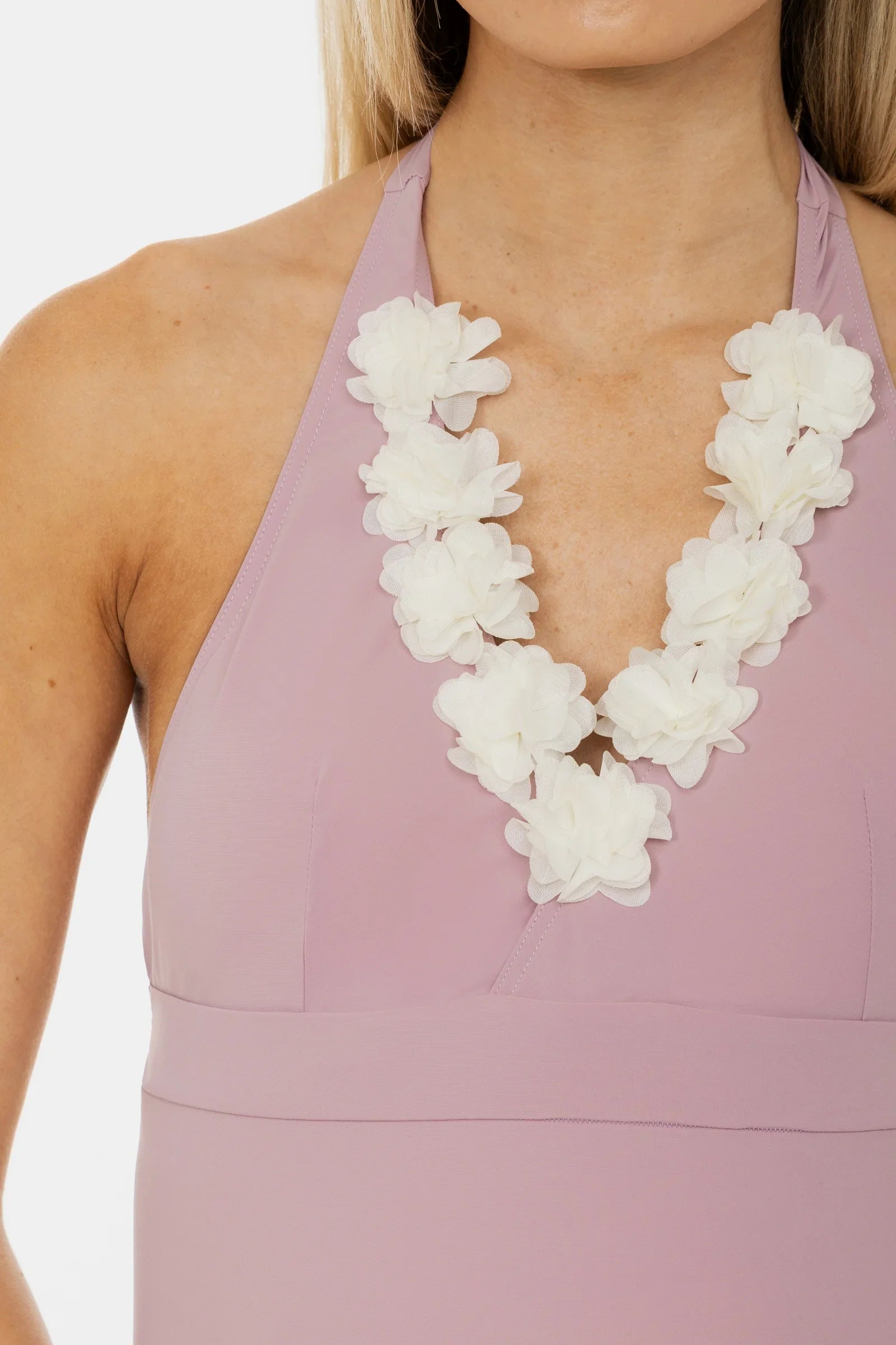 Costum de baie pentru gravide cu aplicații cu flori în culoarea pudră